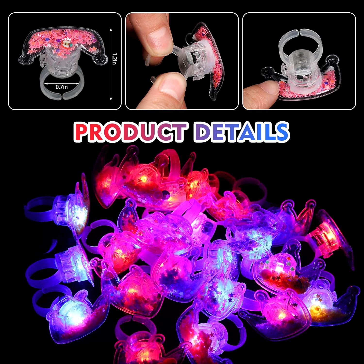 TUWUNA Princess Party Favors 24 Pcs Glitter Crown LED Light Up Rings Glowing Finger Rings Toys for Princess Birthday Party Supplies Classroom Prizes Pinata Goodie Bag Stuffers Gifts