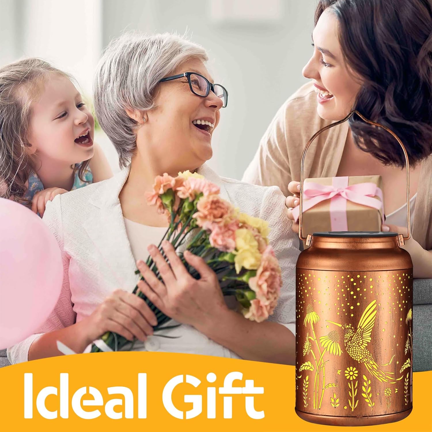 - Graceful Decorative Design:The retro appearance, with gold copper color and hollow out metal veneer, the solar outdoor lanterns casts bright and warm light in darkness, accompanied by gorgeous and graceful hummingbird patterns, adding a beautiful atmosphere to the surrounding environment.