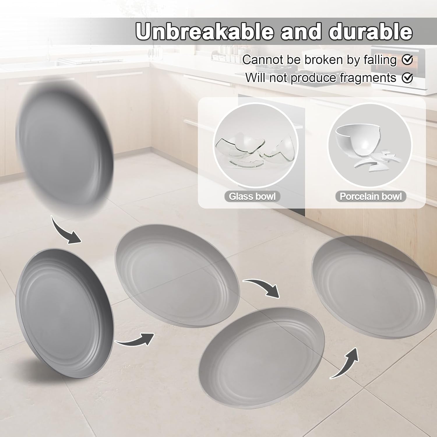12 Pcs Unbreakable Deep Dinner Plates Set, 10 inch Reusable Plastic Wheat Straw Plates, Microwave and Dishwasher Safe Plate for Kitchen, Lightweight Plate for Dessert, BPA Free, Gray