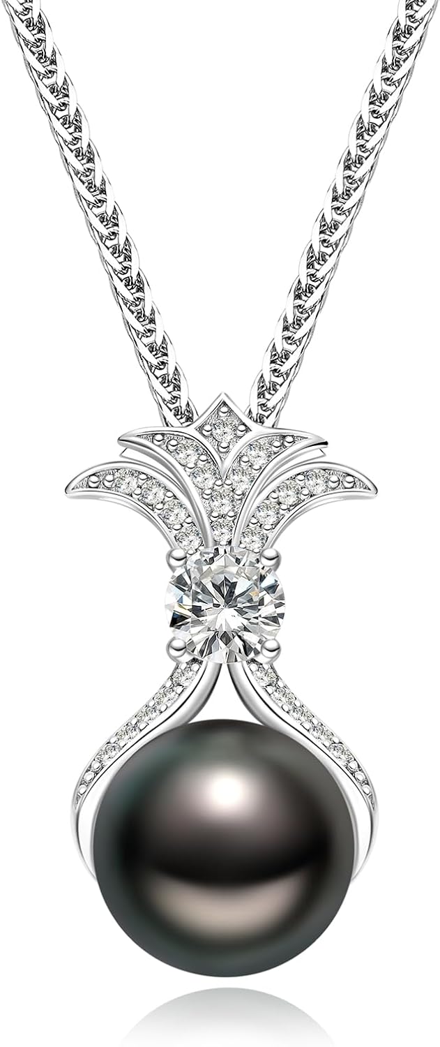 - Black Pearl Necklace 9-10mm, Our chain and pendant are made of S925 silver, Crown shape, representing the mature love after precipitation, emphasizing the permanence of emotion, fashion and gorgeous, highlight the female charm of advanced atmosphere, round technology, comfortable to wear