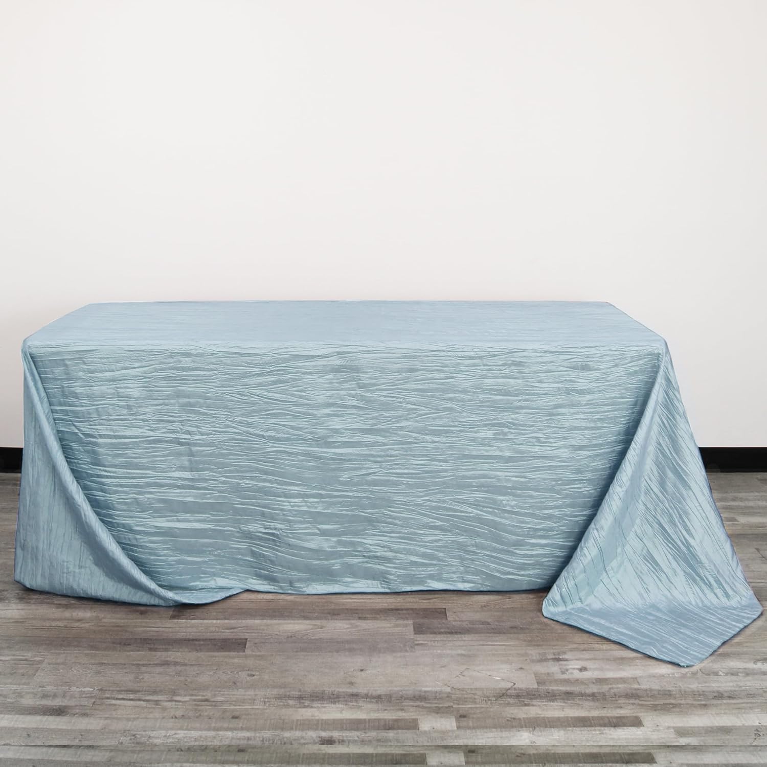 - Elevate your event decor with our 90 x 156 inch crinkle taffeta tablecloth, perfect for 8 ft rectangular tables at weddings and upscale gatherings.