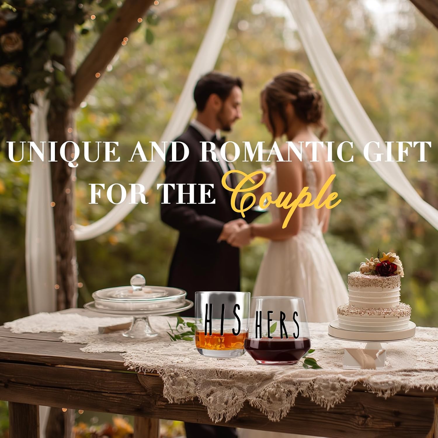 - Unique "His & Hers" Design: We carefully selected classic modern stemless wine glasses and vintage whiskey glasses, and printed the words "His & Hers" on the glasses by baking them at high temperature, ensuring that these designs remain intact no matter how many times you use and wash them. Such a unique design clearly expresses the transformation of identity, represents the next stage of life, and will leave a deep memory for us.