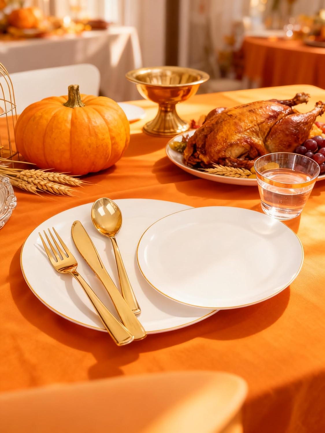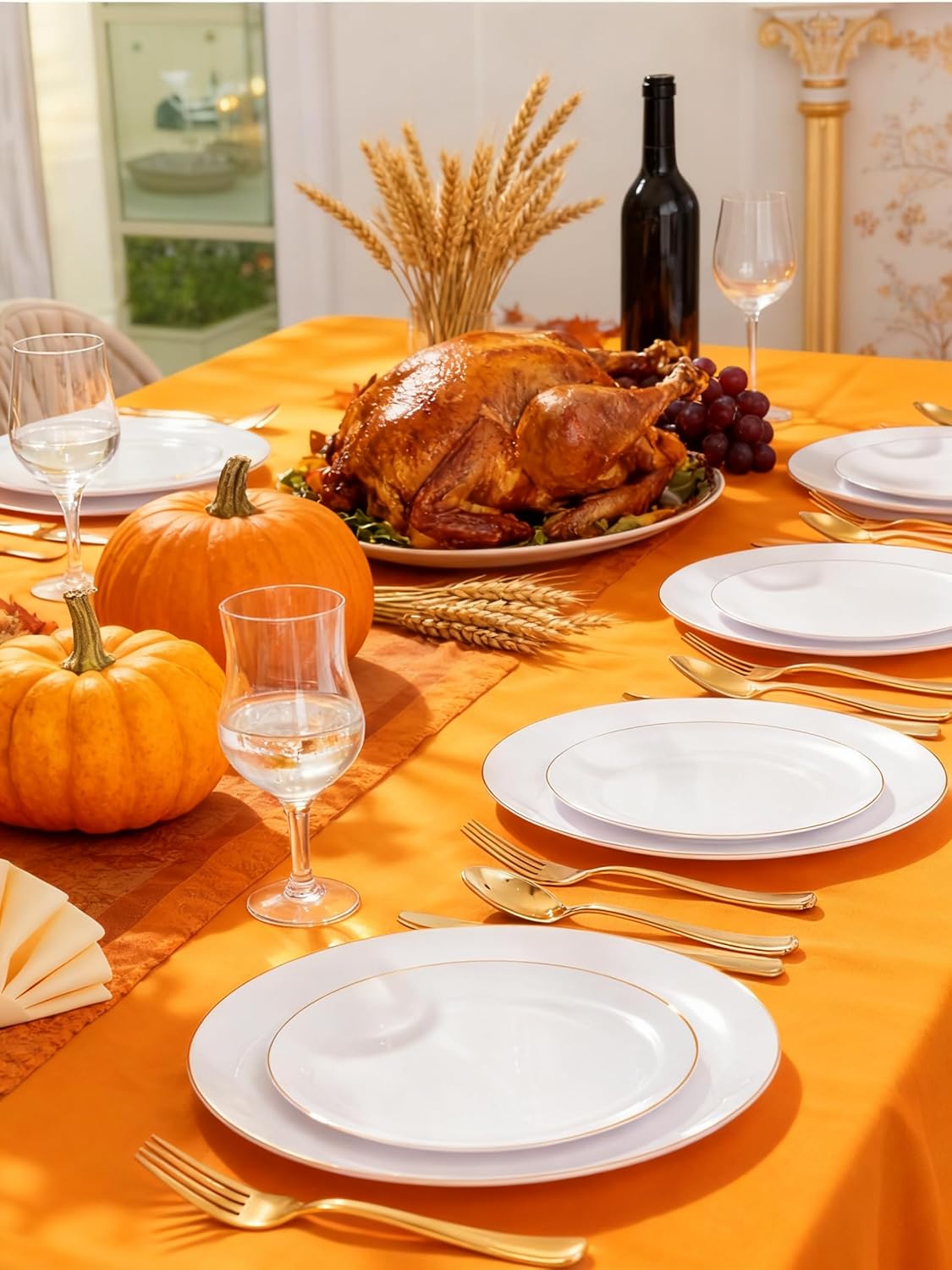 WDF 150Pcs White and Gold Plastic Plates - Gold Plates Disposable - 25guest Disposable Dinnerware Include 25 Dinner Plate, 25 Dessert Plate, 25 Cutlery & 25 9oz Cups for Wedding & Thanksgiving Party