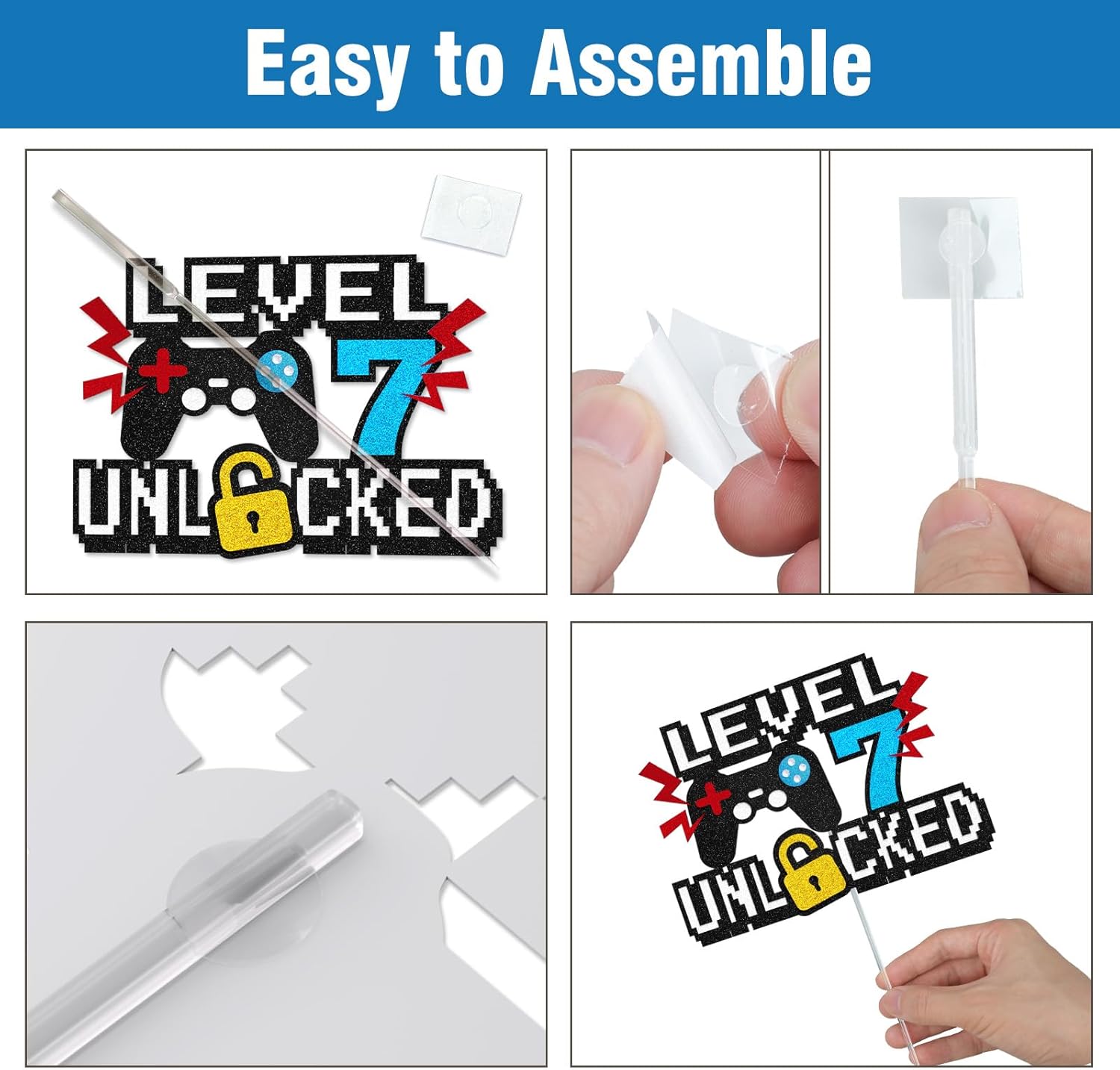 - 【Easy To Use】 Video Game theme cake toppers need to be DIY glued by yourself, we are equipped with glue dots, installation is very simple and quick, enjoy your gaming party with these birthday party decorations