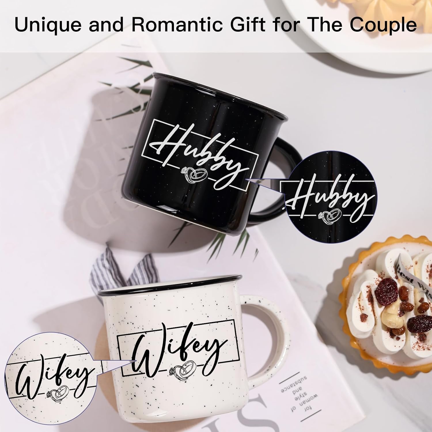- Romantic and Elegant "Hubby & Wifey" Design: These classic mugs are made of durable high-quality ceramics and engraved with the bold words "Hubby" and "Wifey". Adopting high-temperature glazing technology, they are designed to resist fading, scratches and dishwasher wear, ensuring they remain vigorous throughout years of daily use. Use this coffee cup to celebrate love and reunion. It is perfect for newlyweds, engaged couples or anniversaries.