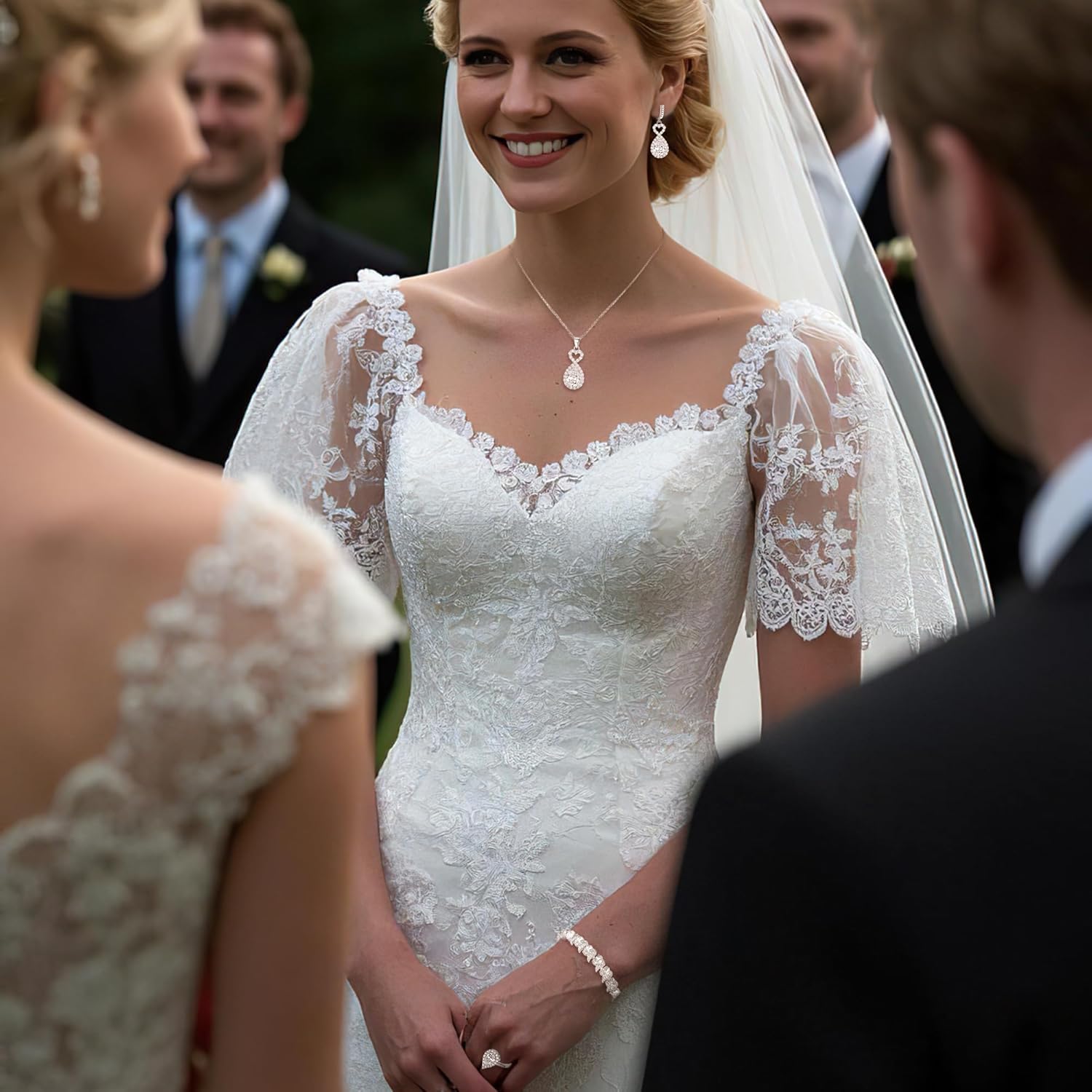 - Material and Craft: Bridal jewelry set for wedding, which is perfect as a prom party jewelry and it will make you more attractive in the party lights.Can be worn with classy casual with formal attire or wedding dress.Adorned with Hearts and Arrows Cut Cubic Zirconia, crafted with eco friendly brass, this special design is born to match the clothes and your unique beauty.