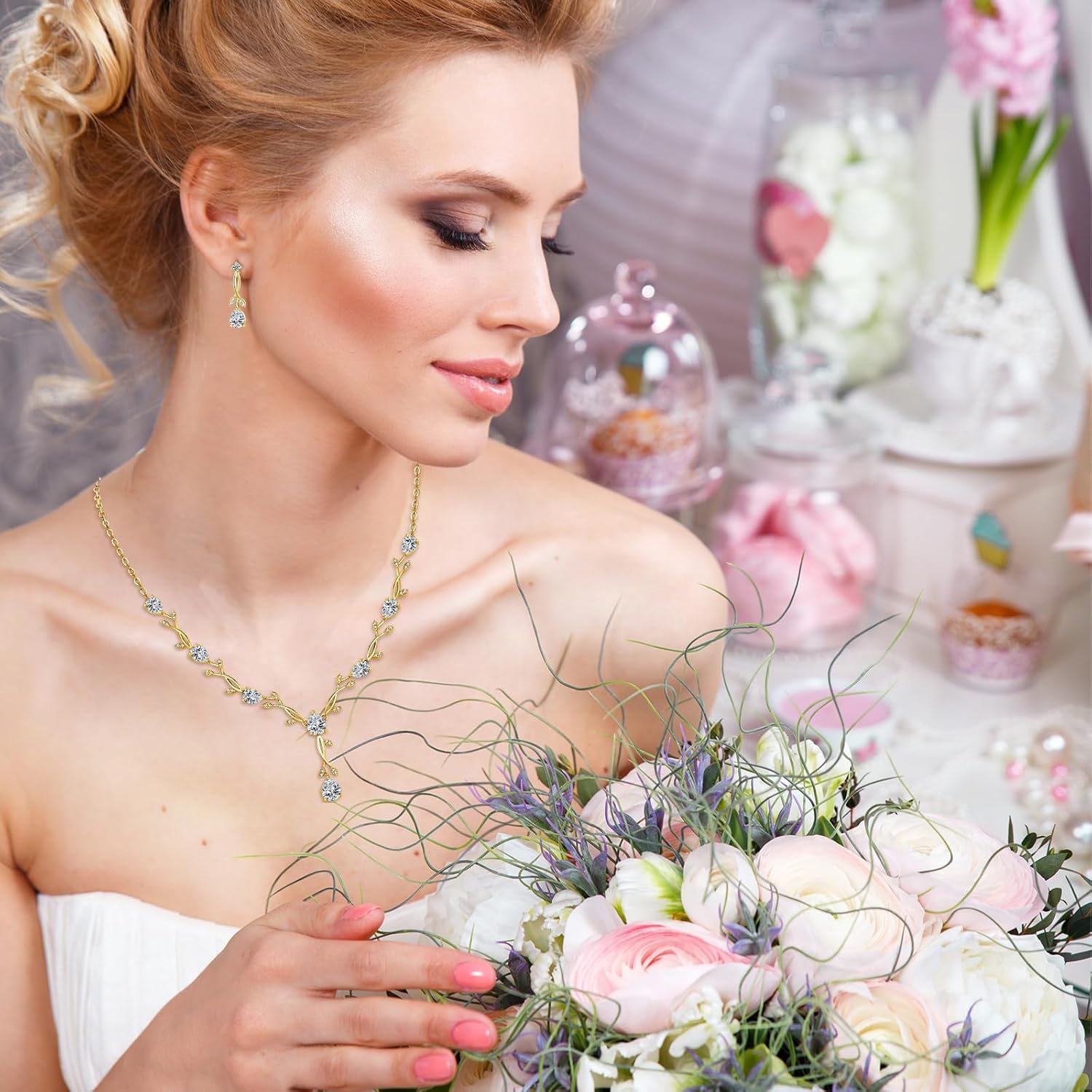 - Easy to Match : The Necklace Earrings Set is perfect for Any Occasion to Wear: Party, Ball, Wedding, Anniversary, Engagement, Graduation, Events or any other Special Occasions. Suitable for Matching Evening Dress, Wedding Dress.