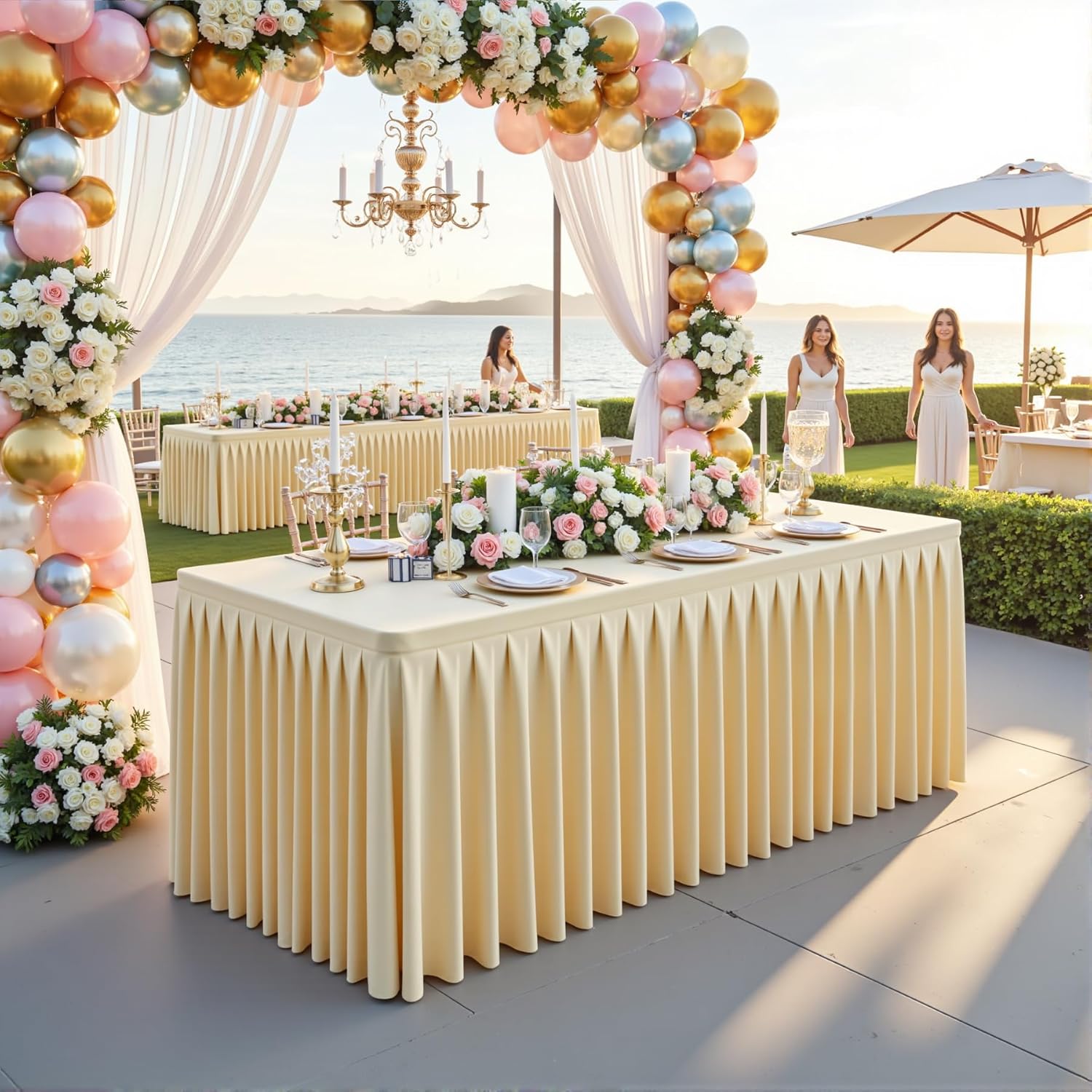 6 Pack Beige Rectangle Tablecloth 8 FT Stretch Spandex Fitted Table Cloth for 8 Foot Rectangle Tables Banquet Tablecloths Wrinkle Free Table Cover Skirt Ruffle Tablecloth for Party Wedding Birthday