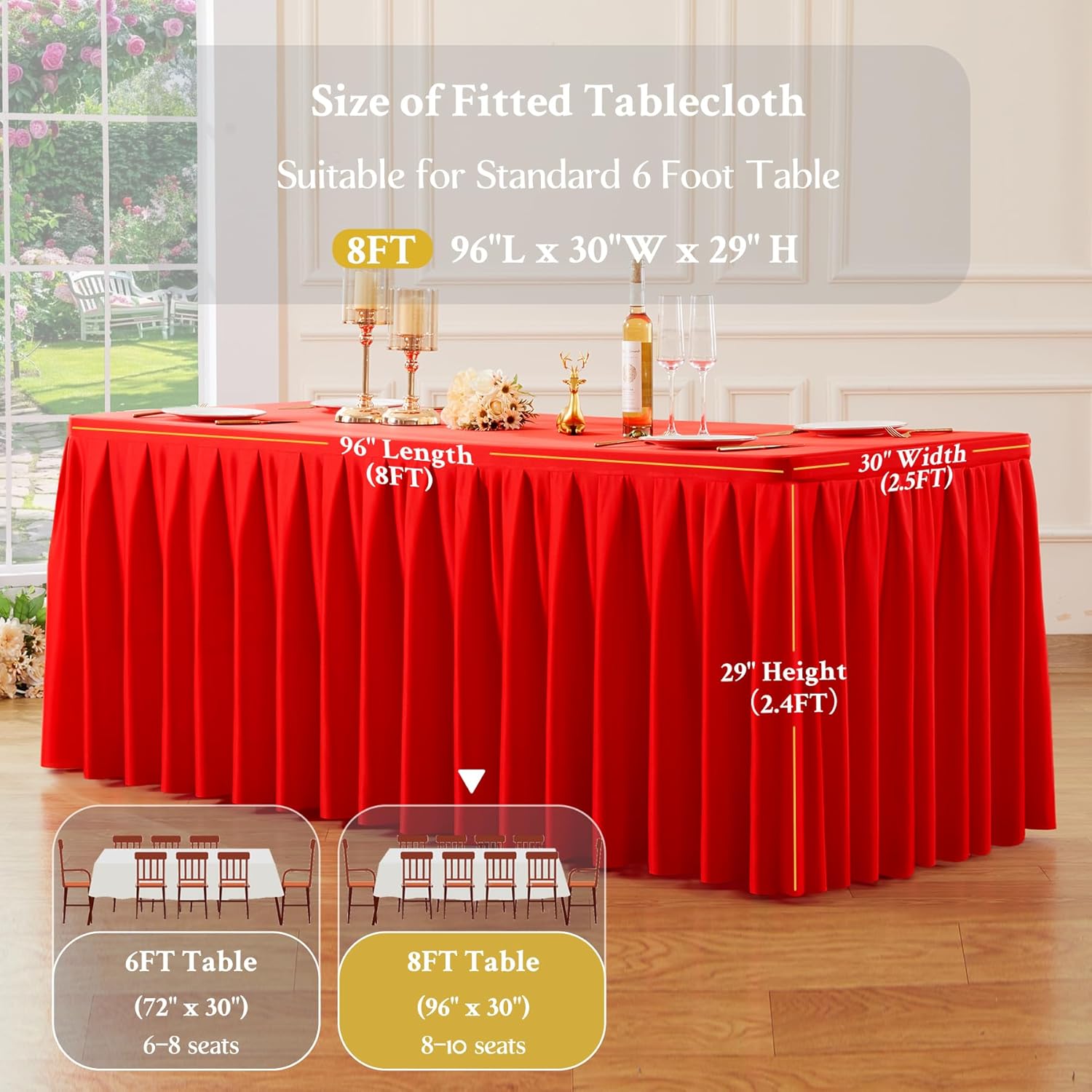 2 Pack Red Rectangle Tablecloth 8 FT Stretch Spandex Fitted Table Cloth for 8 Foot Rectangle Tables Banquet Tablecloths Wrinkle Free Table Cover Skirt Ruffle Tablecloths for Party Wedding Birthday