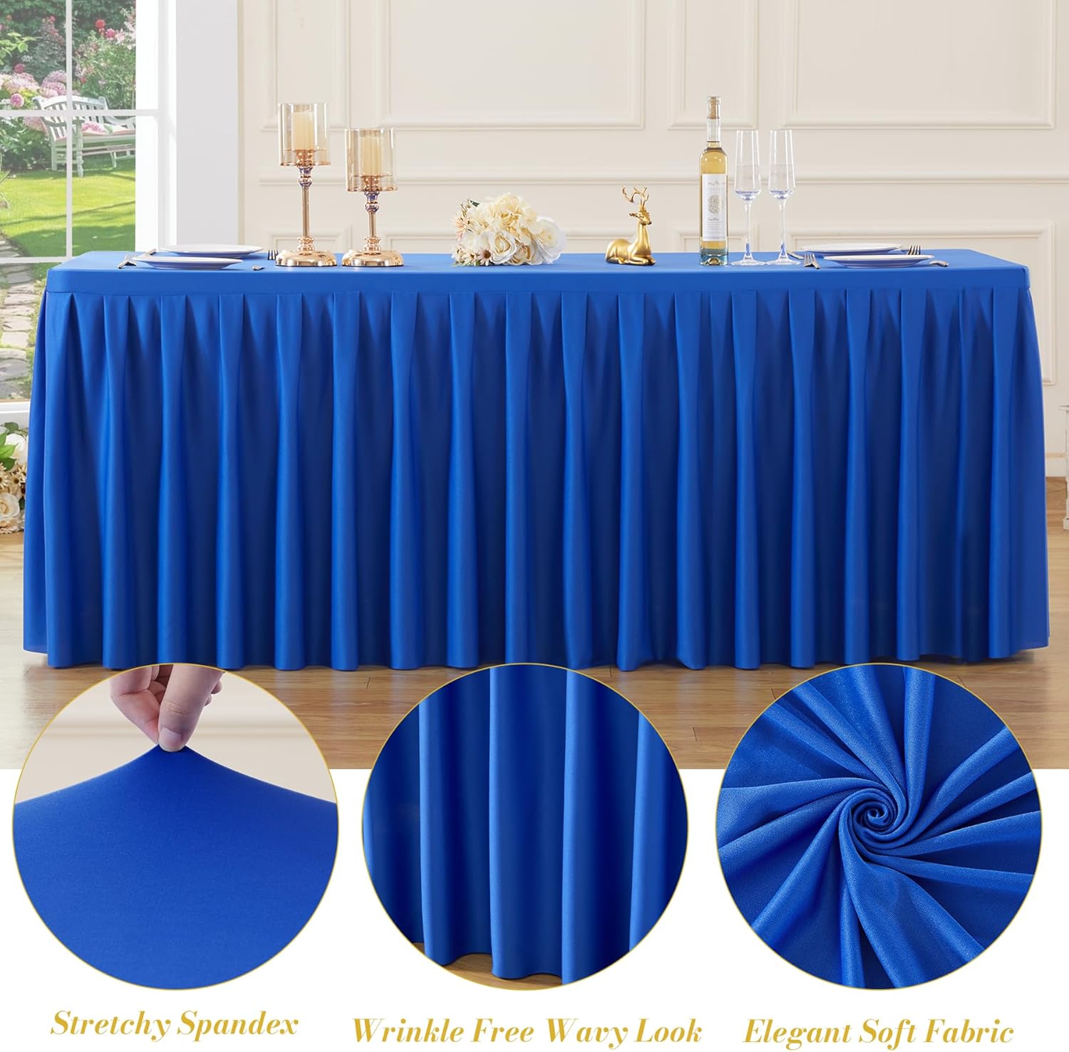 2 Pack Royal Blue Rectangle Tablecloth 6 FT Stretch Spandex Fitted Table Cloth for 6 foot rectangle tables Banquet Tablecloths Wrinkle Free Table Cover Skirt Stitch Ruffle Tablecloth for Party Wedding