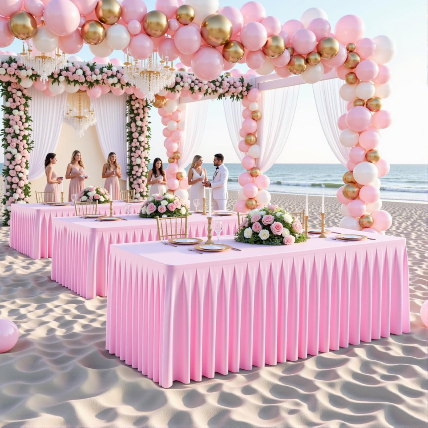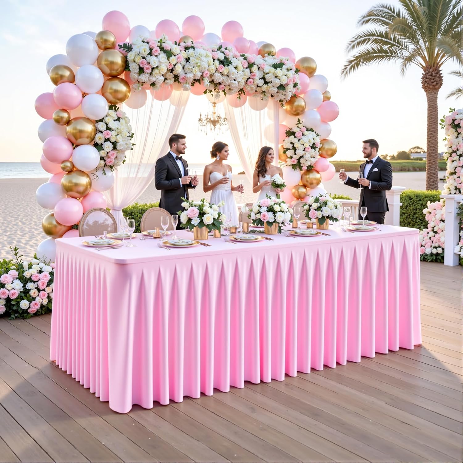 - Exquisite Craftsmanship: The light pink table cloth rectangle is expertly sewn with refined, even pleats that create a graceful, sophisticated drape. The uniform wrinkles enhance the texture, adding a touch of luxury while maintaining an effortlessly elegant appearance for any occasion.