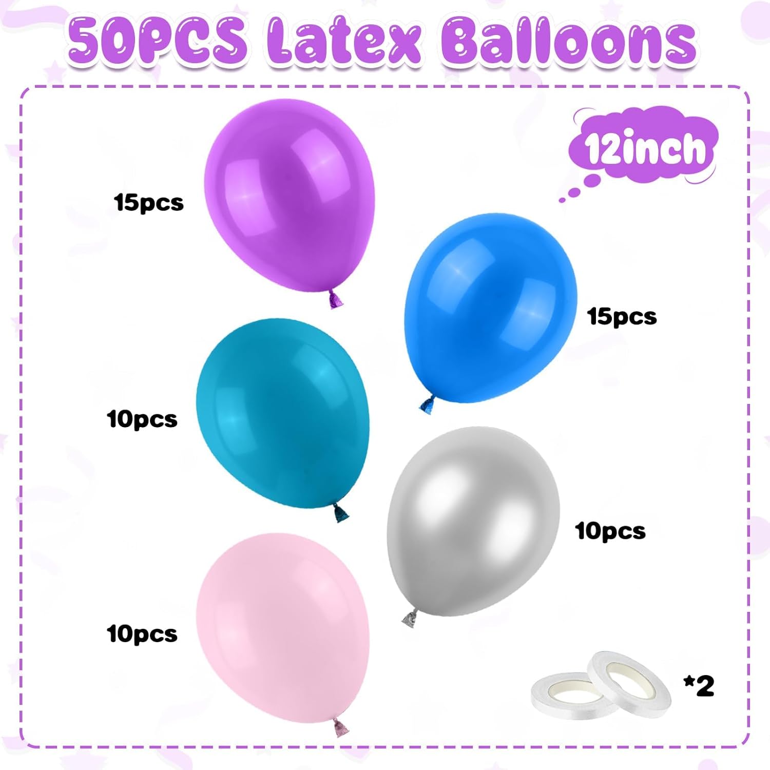 - Material of Balloons:Our blue purple pink balloons are made of advanced material latex. resistant and safe for long time. And the balloon is so eye-catching and beautiful at your party. We provide the balloon chain and ribbon to help you put the balloon garland arch easier. There will be no inferior decoration and broken balloons to destroy your party.