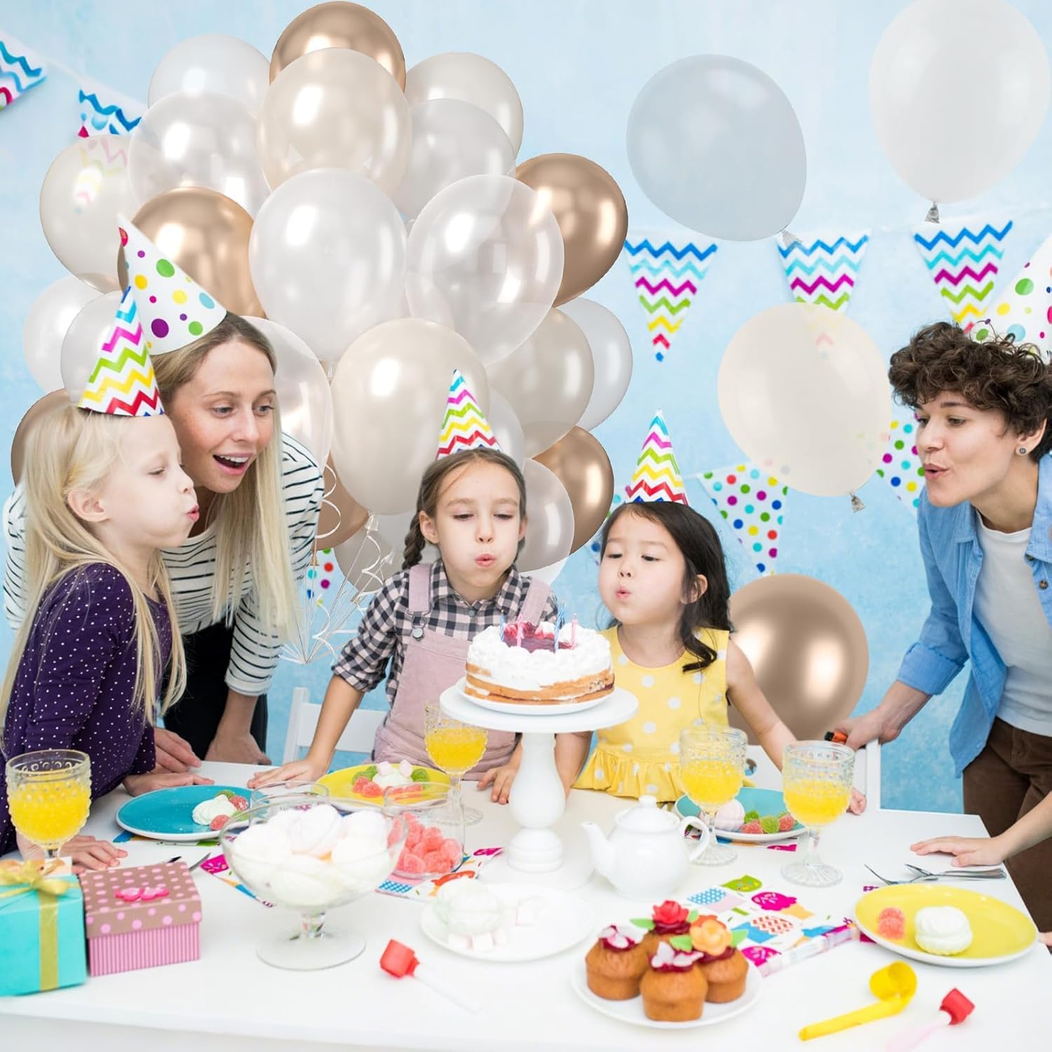 - Various Occasions: Our pearl white gold balloons suitable for birthdays party, jungle safari party, baby shower, weddings, anniversary parties, graduation, children's school party, shopping mall, bar and other activities decoration. Makes your party more attractive and fun.