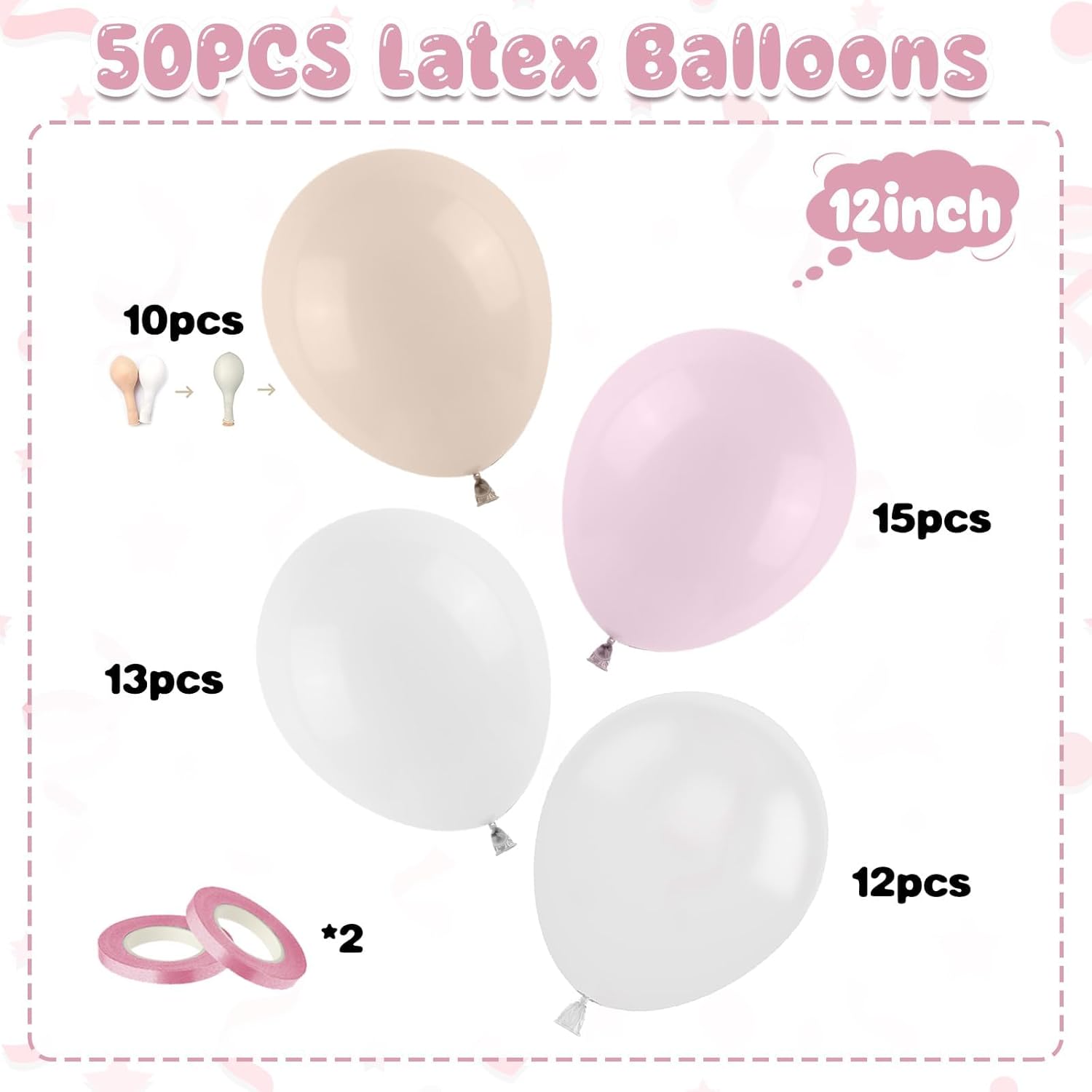 Blush Pink Balloons, 50 PCS 12 Inch Double Stuffed Nude Cream Dusty Pink White Sand Latex Balloons for Bridal Baby Girls Shower Boho Bachelorette Birthday Wedding Party Decorations