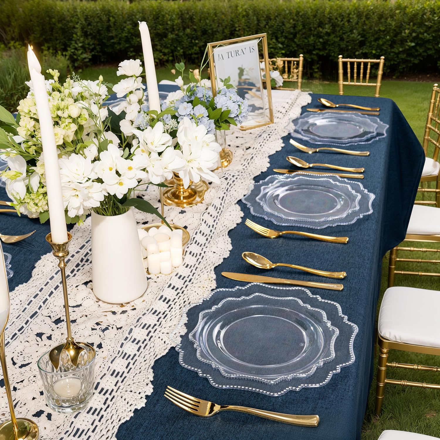 - 【100 PACKS PLASTIC PLATES】 Including 50 10.5" dinner plates and 50 8.25" dessert plates, which can serve 50 guests. Clear disposable plastic plates make your party clean easy!