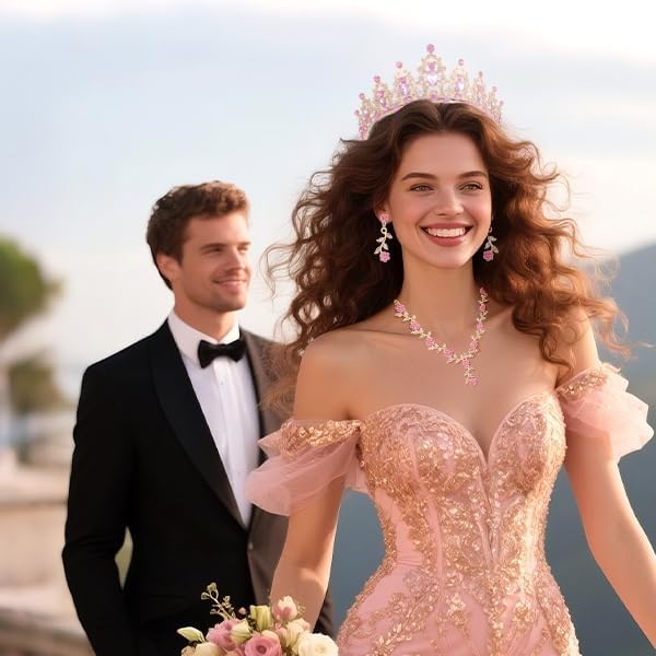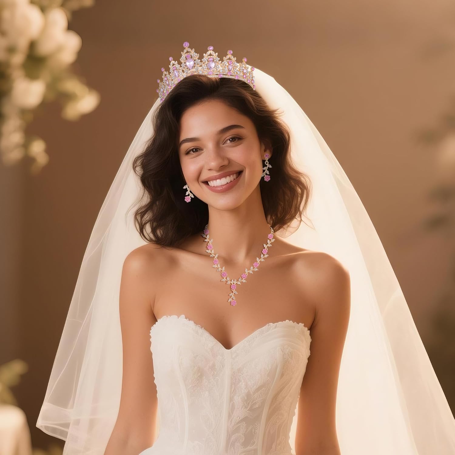 - Dimensions: Dia 13-15 cm Height 6 cm,This tiara features an adjustable steel ring design, allowing for subtle adjustments to fitvarious head shapes and sizes.Necklace: Pendant Size: 9.8*1.8 in; Chain Length (Adjustable): 19.6-22.4 in. Earrings (Pierced): 1.5*0.5 in,Each Earring Weight:3.7g. Total Weight: 38g