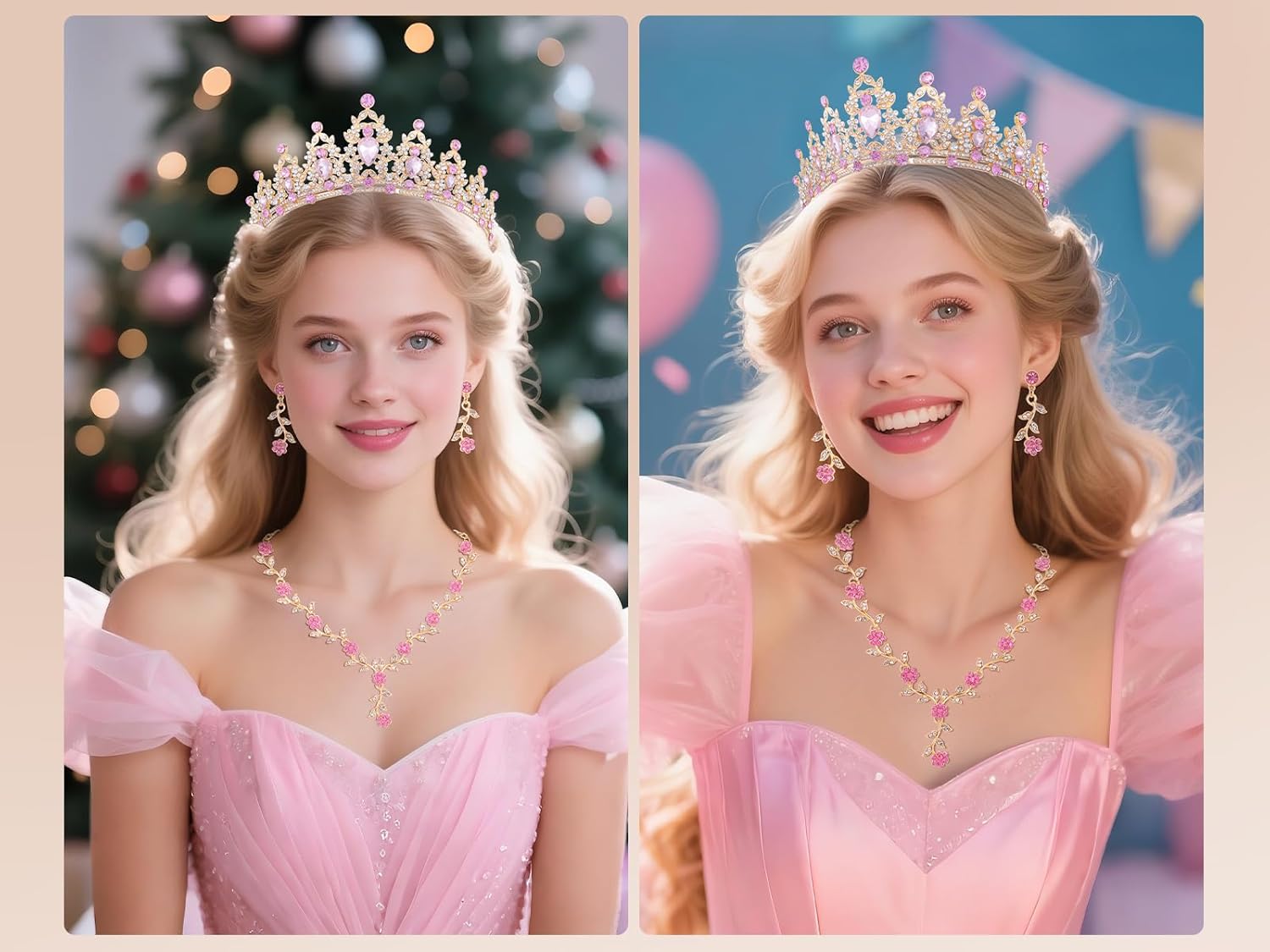 Kamirola Tiaras and Crowns for Women,Tiaras Earrings Necklace, Crystal Bridal Jewelry Set, Costume Party Halloween Prom Pageant Jewelry for Women(TR45)