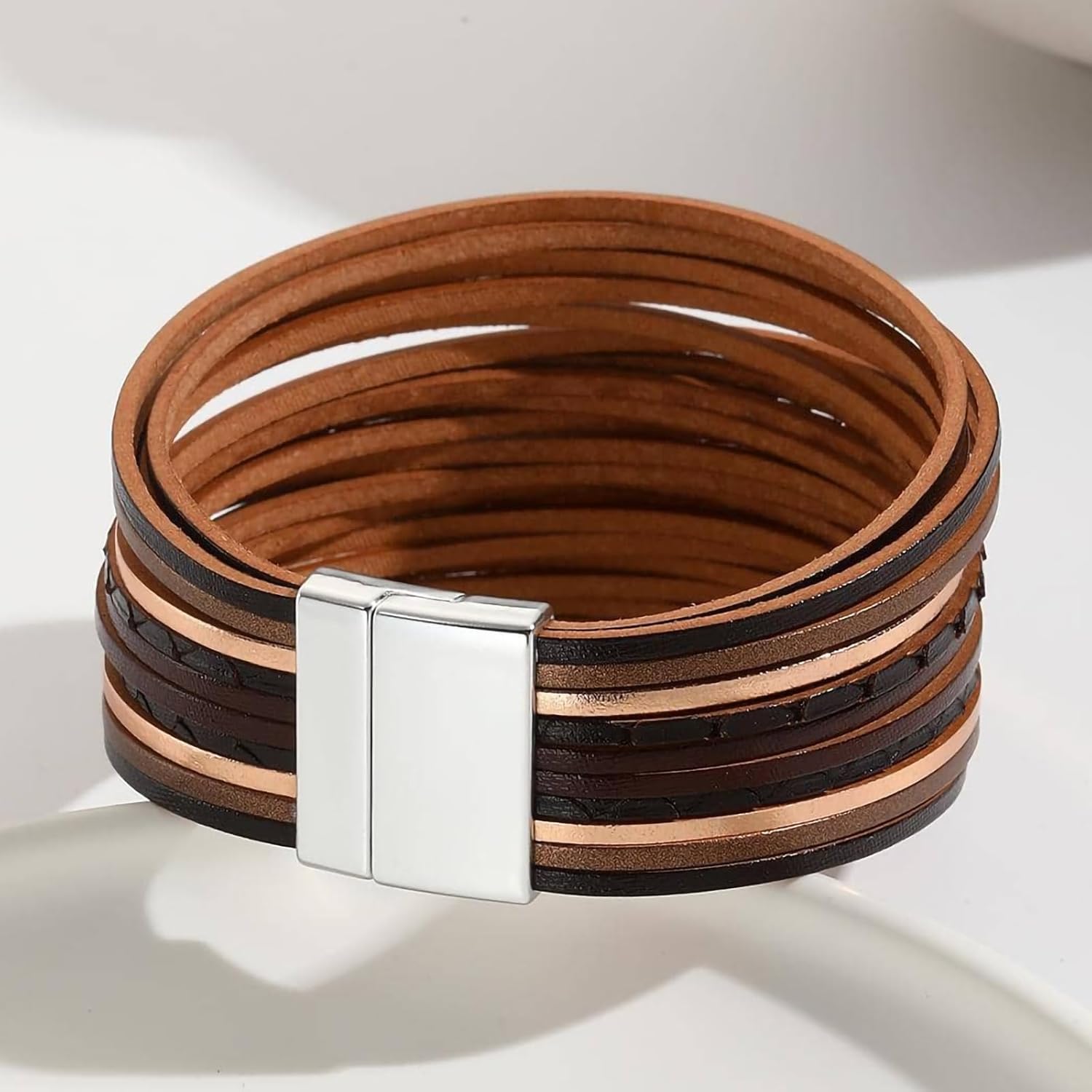 - 【SUPERIOR QUALITY】 Our Leather Cuff Bracelets is carefully crafted by handmade with environmental leather and high-grade alloy clasp to ensure you get a durable and exquisite bracelet. Stranding with premium accessories makes this wrap bracelets looks gorgeous and trend appearance, it will satisfying your taste in fashion.