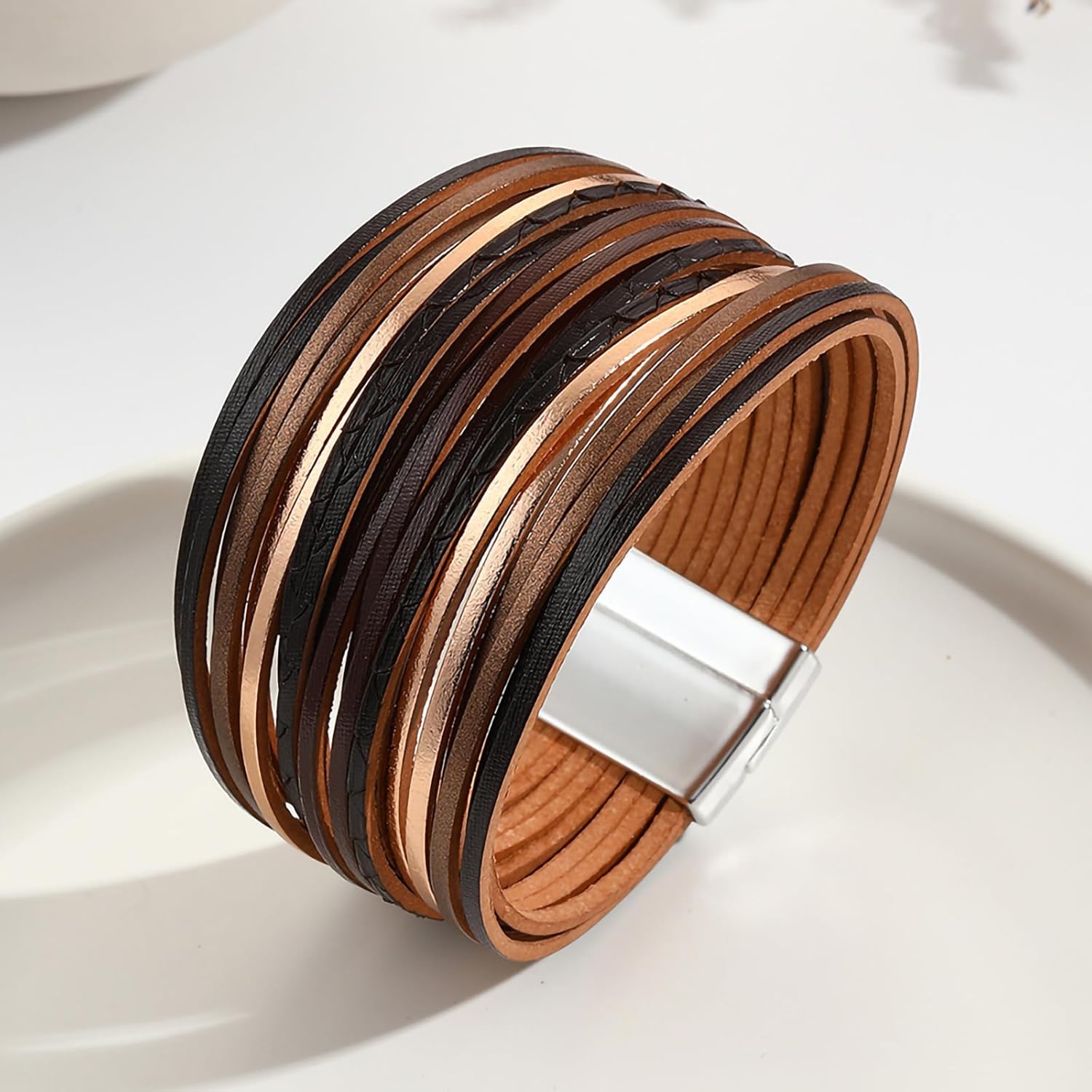 Fesciory Leather Wrap Bracelets for Women, Boho Leopard Multi-Layer Crystal Beads Cuff Bracelet Jewelry