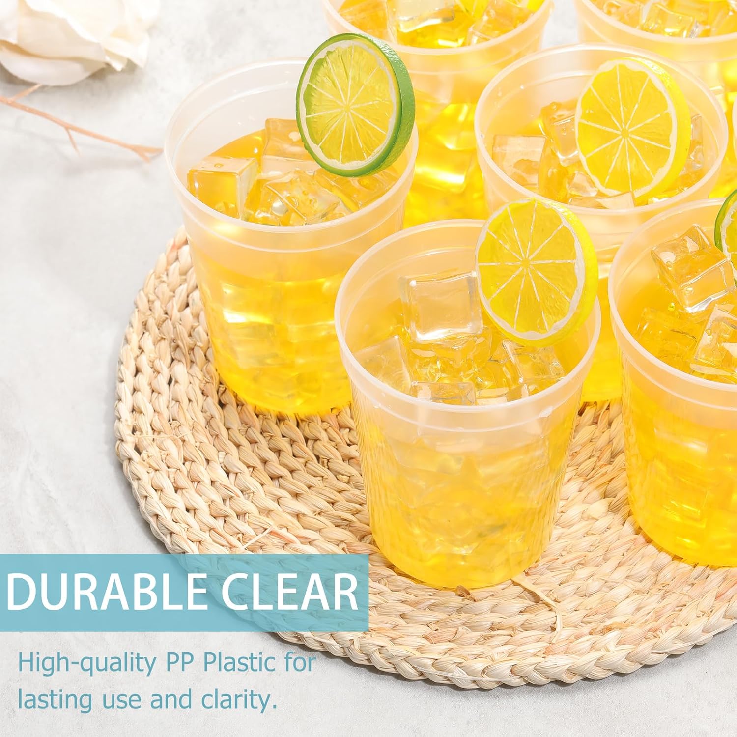 Yungyan 200 Pack 16oz Stadium Cups Reusable Plastic Cups Blank Drink Tumblers for Parties, Events, DIY Projects, 4.5 x 3.54 x 2.72 Inch (Clear)