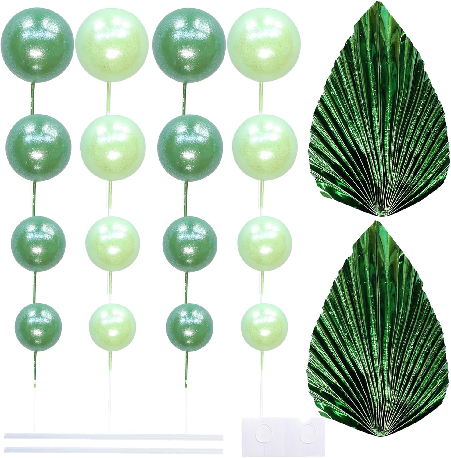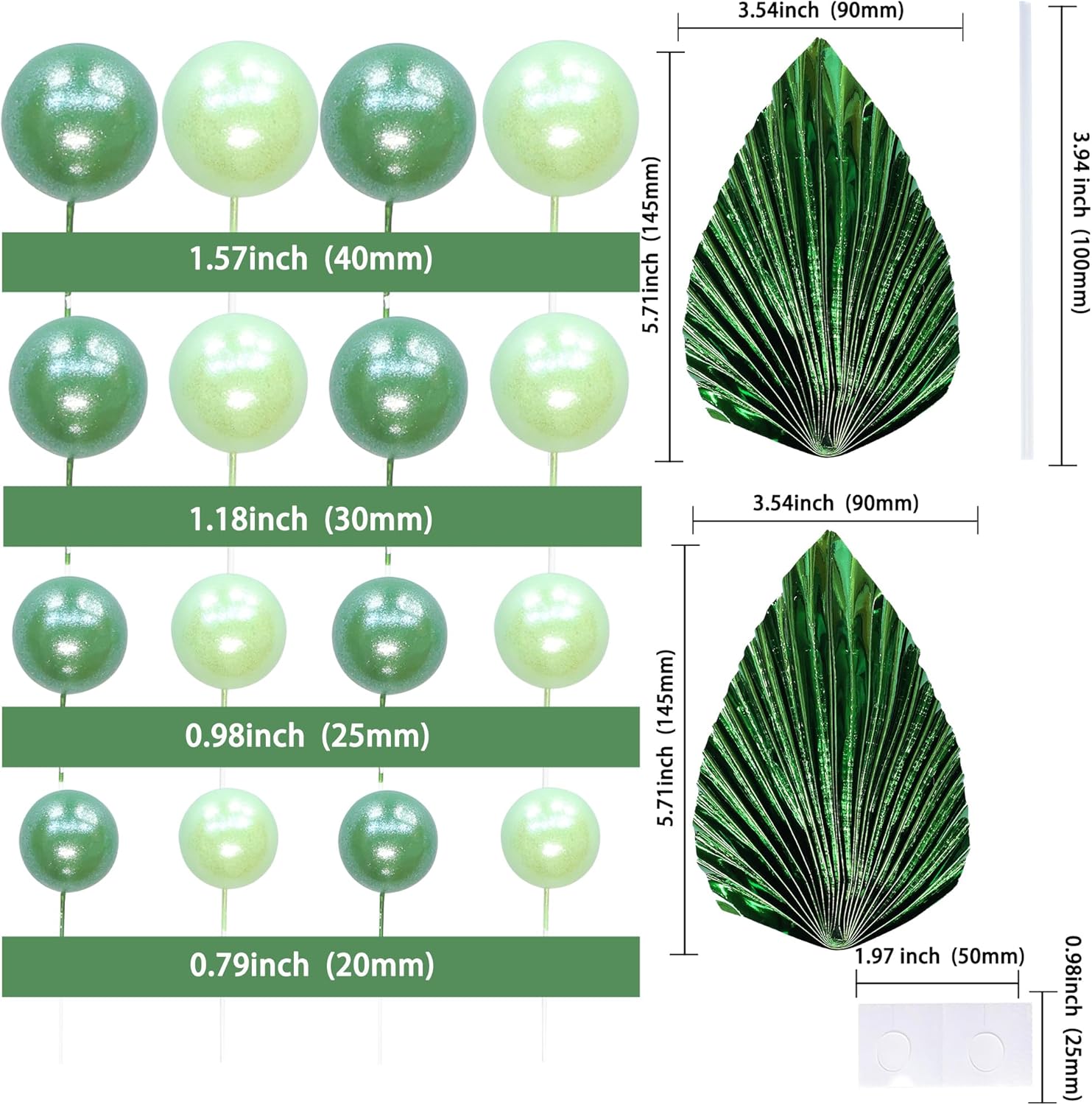 Ephlyn 28Pcs Paper Palm Fan Cake Topper Balls Cake Pick Wedding Bridal Shower DIY Cake Decorations for Baby Shower Wedding Birthday Anniversary Party Supplies Light Green