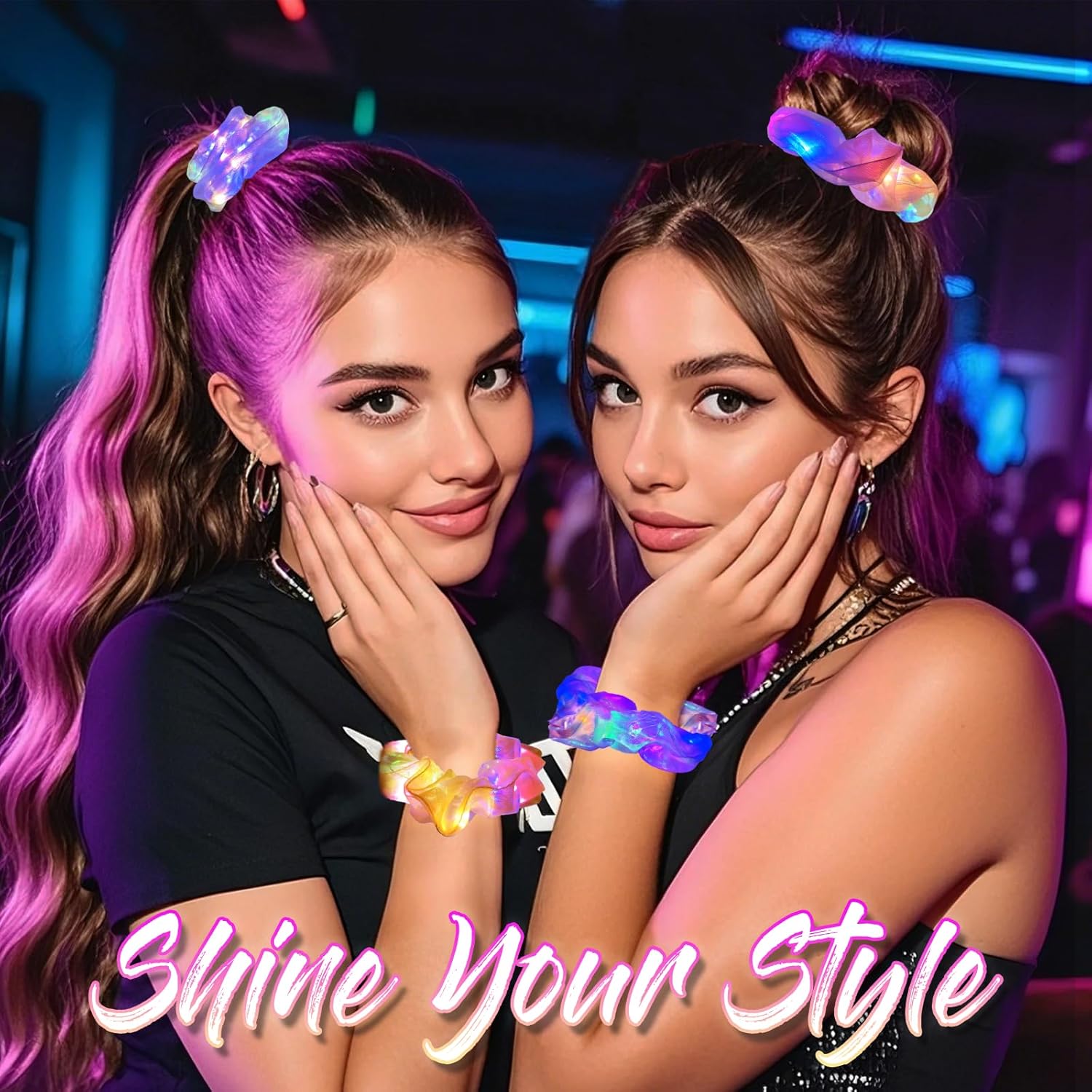 6 Pcs LED Scrunchies for Women, Colorful Mermaid Scrunchy, Light Up Scrunchies for Girls, 3 Light Modes, Glow in the Dark Hair Accessories