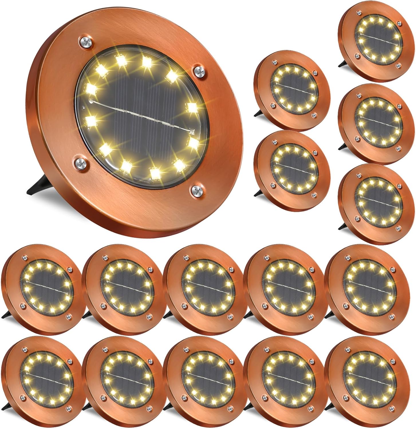 - Step up to the brightness! While other products boast 12 LED lights, ours solar floor lights outdoor it to the next level with an impressive 12 LED lights. It's not just brighter, but we've also beefed up the ground stake, making it sturdier and less prone to snapping when you stick it in the ground. Shine on with confidence