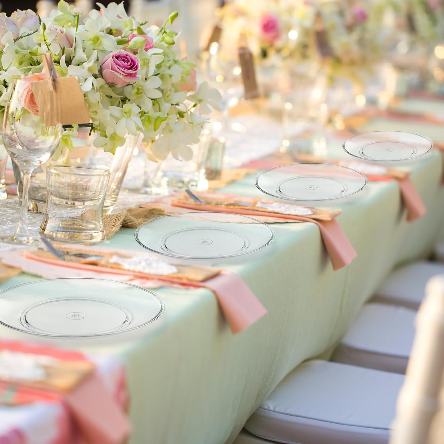 - Clear and Elegant Design: the clear plates for wedding reception are clear, simple but elegant, add a stylish touch to your party; They have smooth lines and edges, without burrs, avoiding scratching your hands; And they are stackable that you can store them easily to save storage space