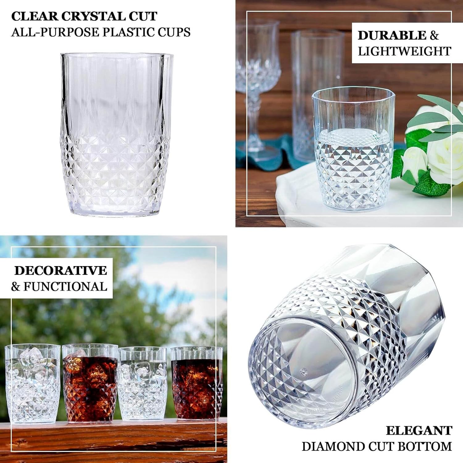 - Elegant and Practical Design: Add a touch of sophistication to your events with crystal-cut cups that enhance décor while ensuring safety with shatterproof plastic—perfect for stress-free hosting. Guests will enjoy the luxurious feel without the worry of breakage.