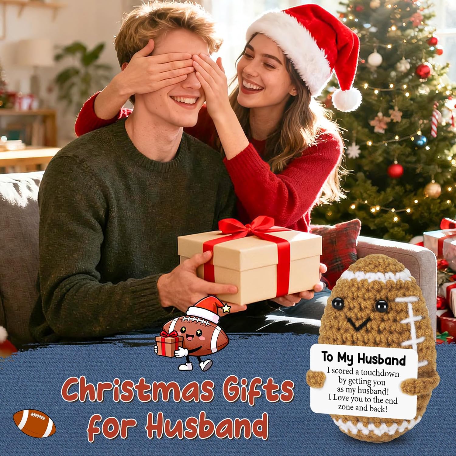- Cute Stress-Relief Gift for Husband Life can be stressful, and sometimes all your husband needs is a little reminder to relax. This cute crochet football is not just for show—it’s a stress-relieving companion that helps uplift his mood and bring a smile to his face, whether he’s at home or at work.