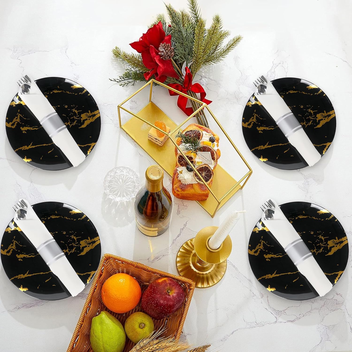 - 【 ELEGANT DESIGN&ERGONOMIC 】 With decent appearance, you can use the prewrapped |disposable utensils|silver plastic cutlery to decorate the dinner table and prepare the feast !This utensils plastic disposable with shiny gold color and highly reflective finish looks like real metal cutlery and perfect for the table arrangement add an elegant atmosphere to the party.This disposable flatware set is designed with an ergonomic handle that can provide a better grip for you while eating or cutting