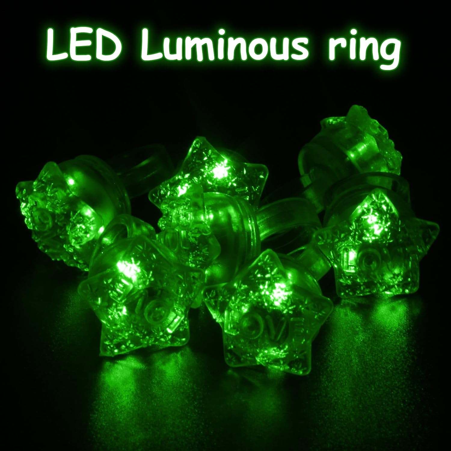 - Party Glow Rings: You will receive 24 pack green light up star rings. These light up toy for putting on amazing light will allow you to dance your hands off, bring much more fun to party decorations such as club, rave, birthday, disco or a school dance. Eye catching flashing LED lights that will make you stand out from the crowd