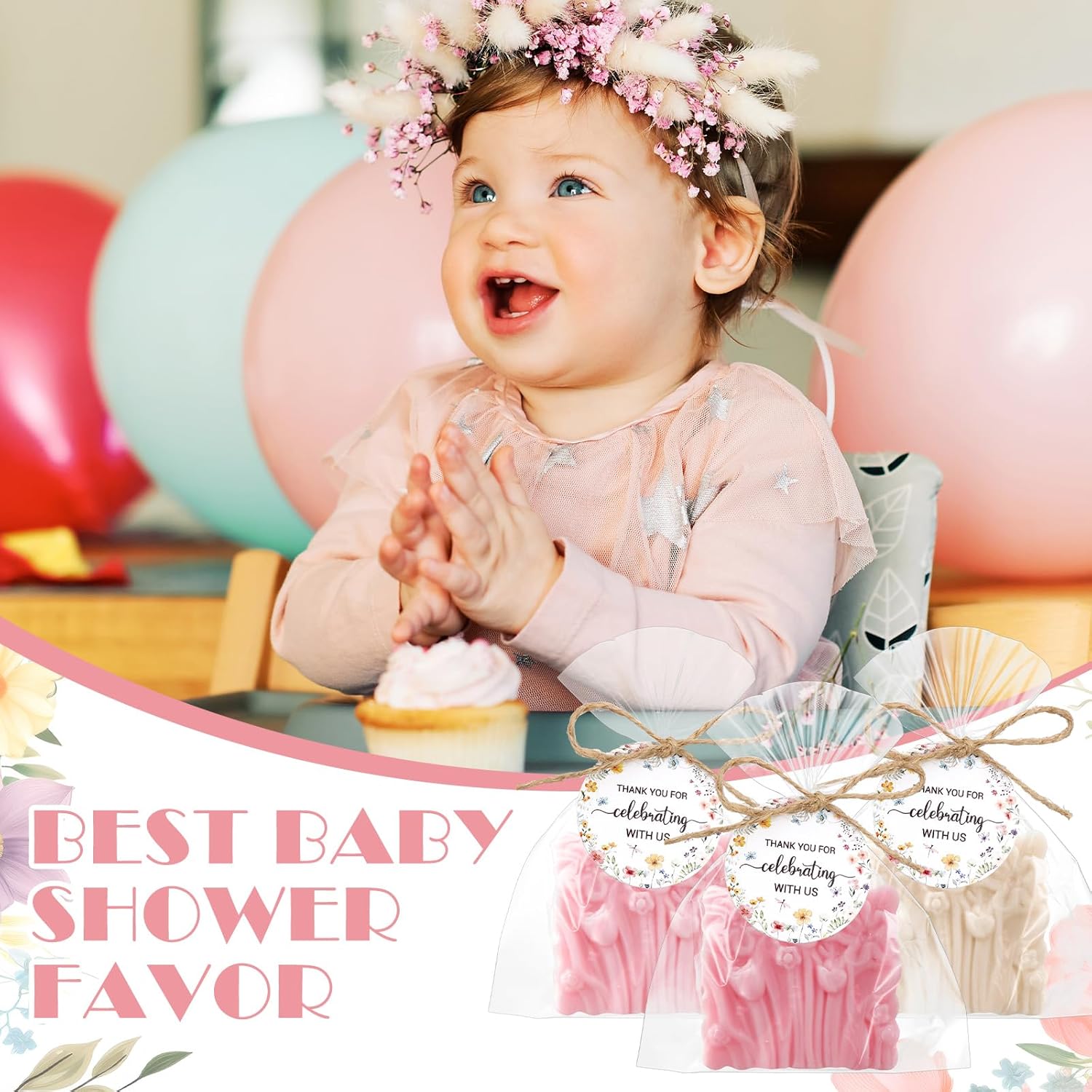 Demissle 20 Pcs Baby Shower Soap Favors Wildflowers Baby Shower in Bloom Flower Bath Soap Gift Set with White Greeting Card Handmade Gifts for Guests Decorations Supplies(Classic Color,Classic Style)
