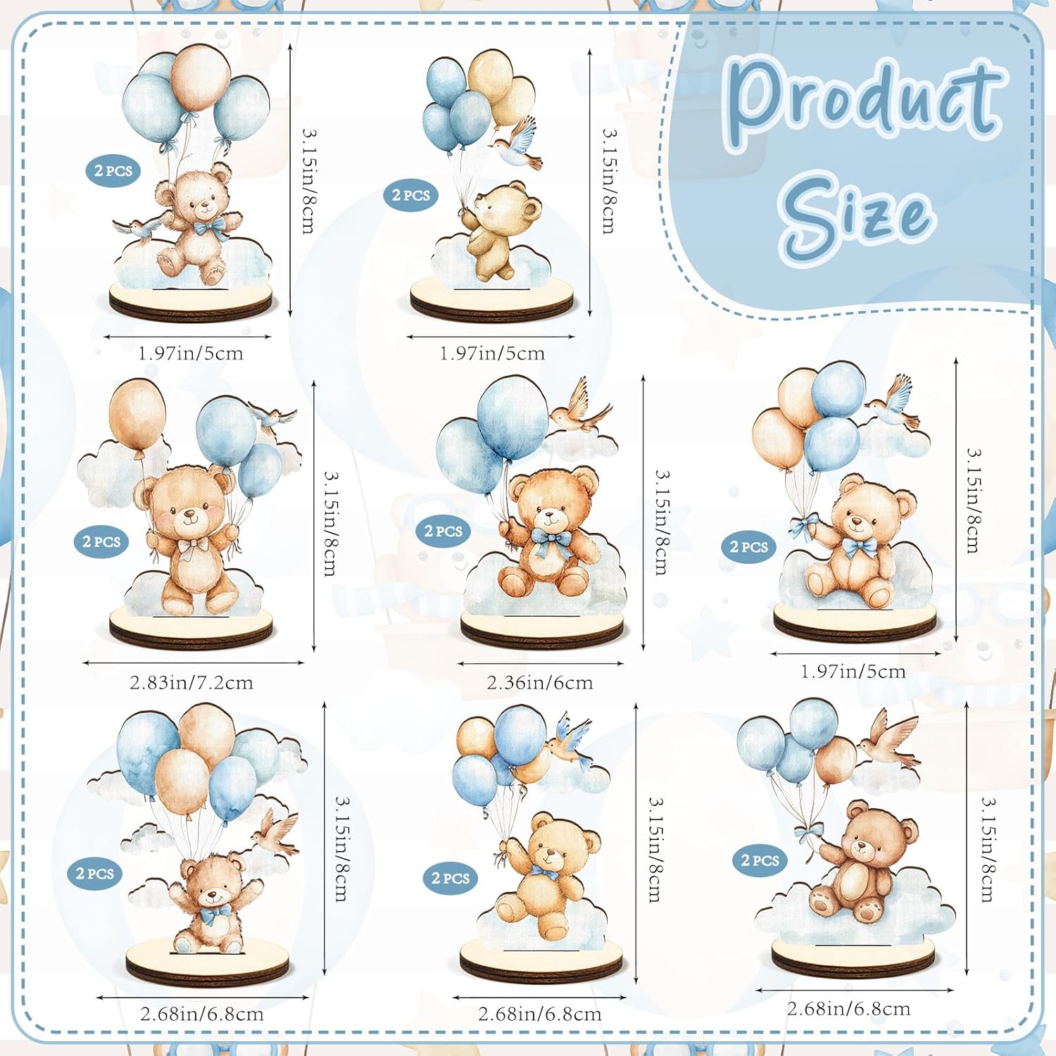 - Blue Bear Baby Shower Table Centerpieces Set: You will get 16 pcs wooden blue bear cutouts (8 styles, each style 2 pcs), sufficient quantities can meet your diversified decoration and matching needs, cute design can easily light up your bear theme baby shower birthday party.