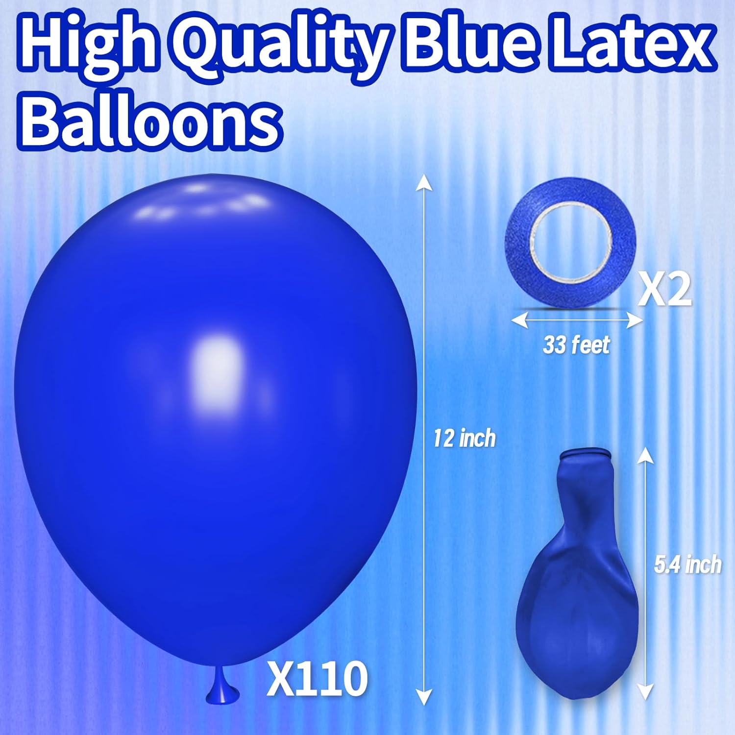 KAWKALSH Blue Balloon 110pcs, 12 Inch Thickened Latex Party Balloons Helium Bright Color for Birthday Baby Shower Wedding Party Supplies Arch Garland Decoration