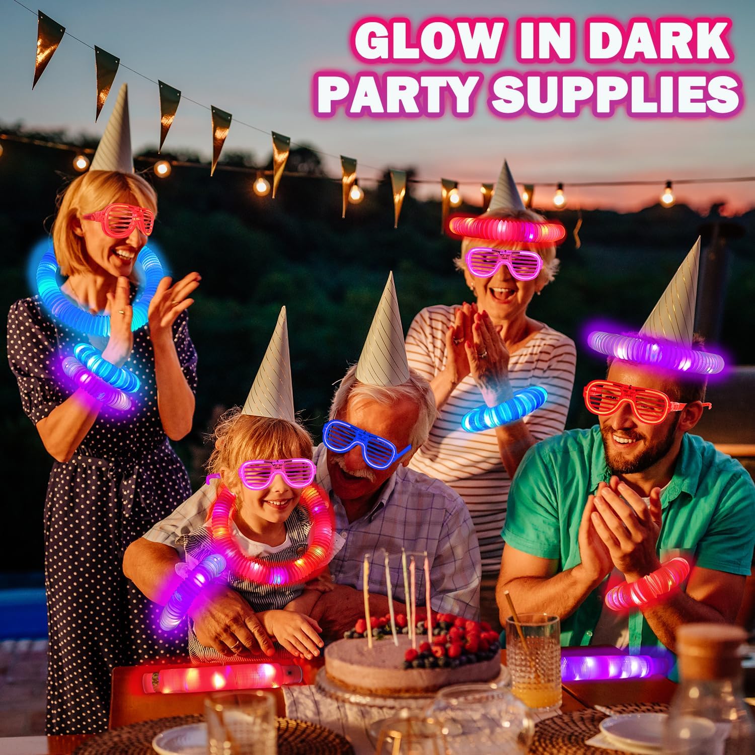 Glow Glasses & Light Up Pop Tubes 6 PCS, Christmas Glow in the Dark Sticks Party Favors Toys Gifts Stocking Stuffers for Kids, Xmas New Years Eve LED Bracelets Necklaces & Neon Sunglasses Accessories