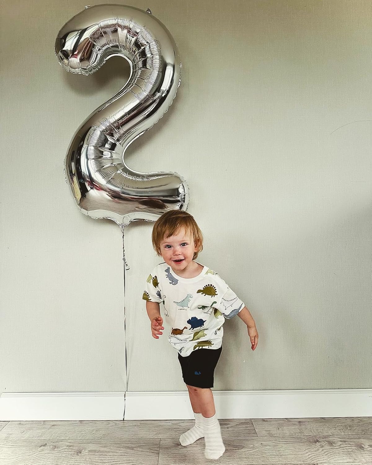 Silver Number 2 Balloon 40 Inch, 2nd Birthday Decoration for Toddlers Girls Boys, Sparkling 2 Number Balloon Party Decor