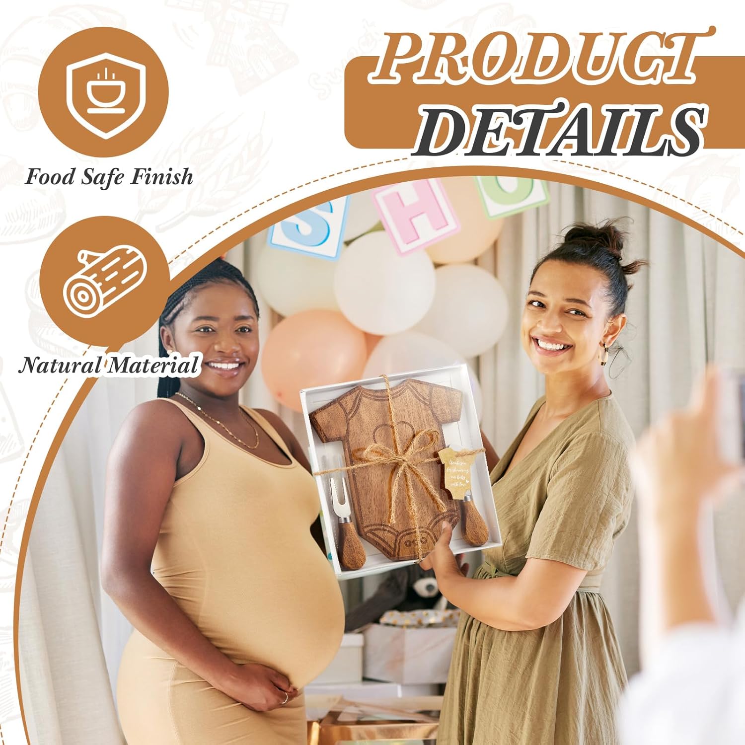 - Ideal Gift Choice: the baby shower cheese board accessories are packaged in gift boxes, with elegant appearance and reliable quality, and are suitable for your guests as gifts or prizes, at baby shower or birthday party; Note: as wood is affected by the weather, if the wooden cheese board has warping, please wipe it with a wet rag and leave it on the table for 2-3 hours to recover, with the warped surface on top