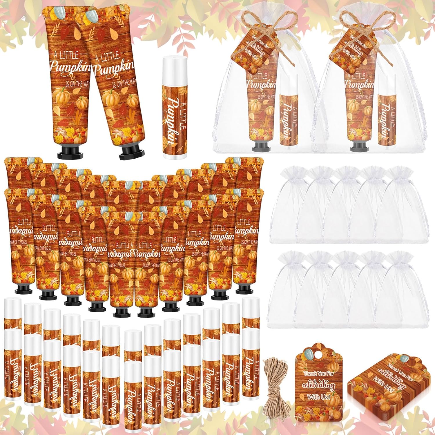 48 Sets 192 Pcs Fall Thanksgiving Baby Shower Gifts Bulk Thanksgiving Little Pumpkin Hand Cream and Lip Balm Baby Shower Party Favors Travel Size for Guests Wedding Party Supplies