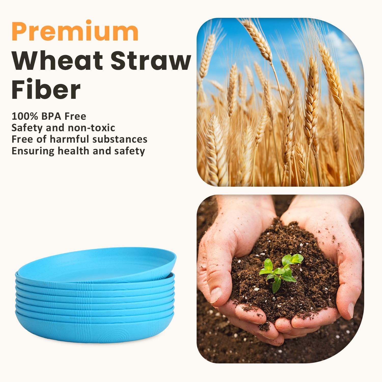 Homienly Wheat Straw Plates, 10 inch Deep Dinner Plates, Service for 8, Unbreakable Plates for Outdoor, Lightweight Microwave and Dishwasher Safe Camping Plate Set for Dinner, Salad, Fruit - Sky Blue
