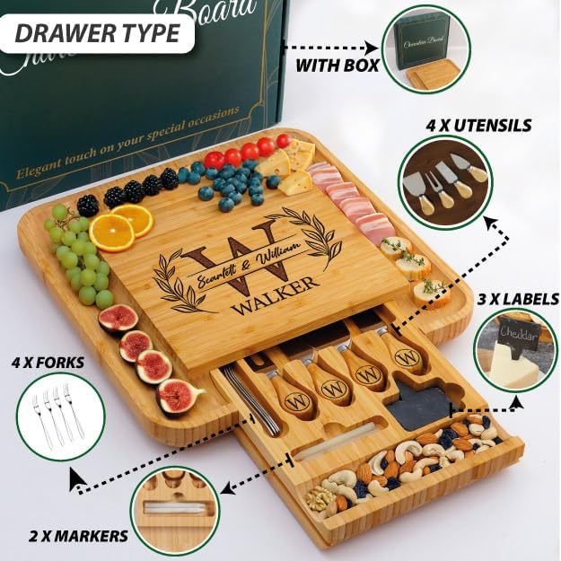 Personalized Charcuterie Board Gifts for Couples – Christmas Custom Large Cheese Board with Knife & Utensil Set for Wedding, Anniversary, Birthday, Housewarming, Engagement, Party, New Home