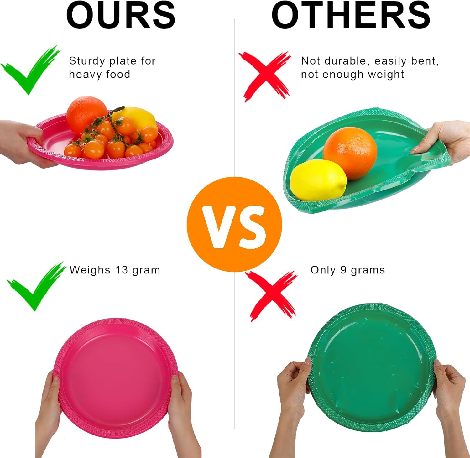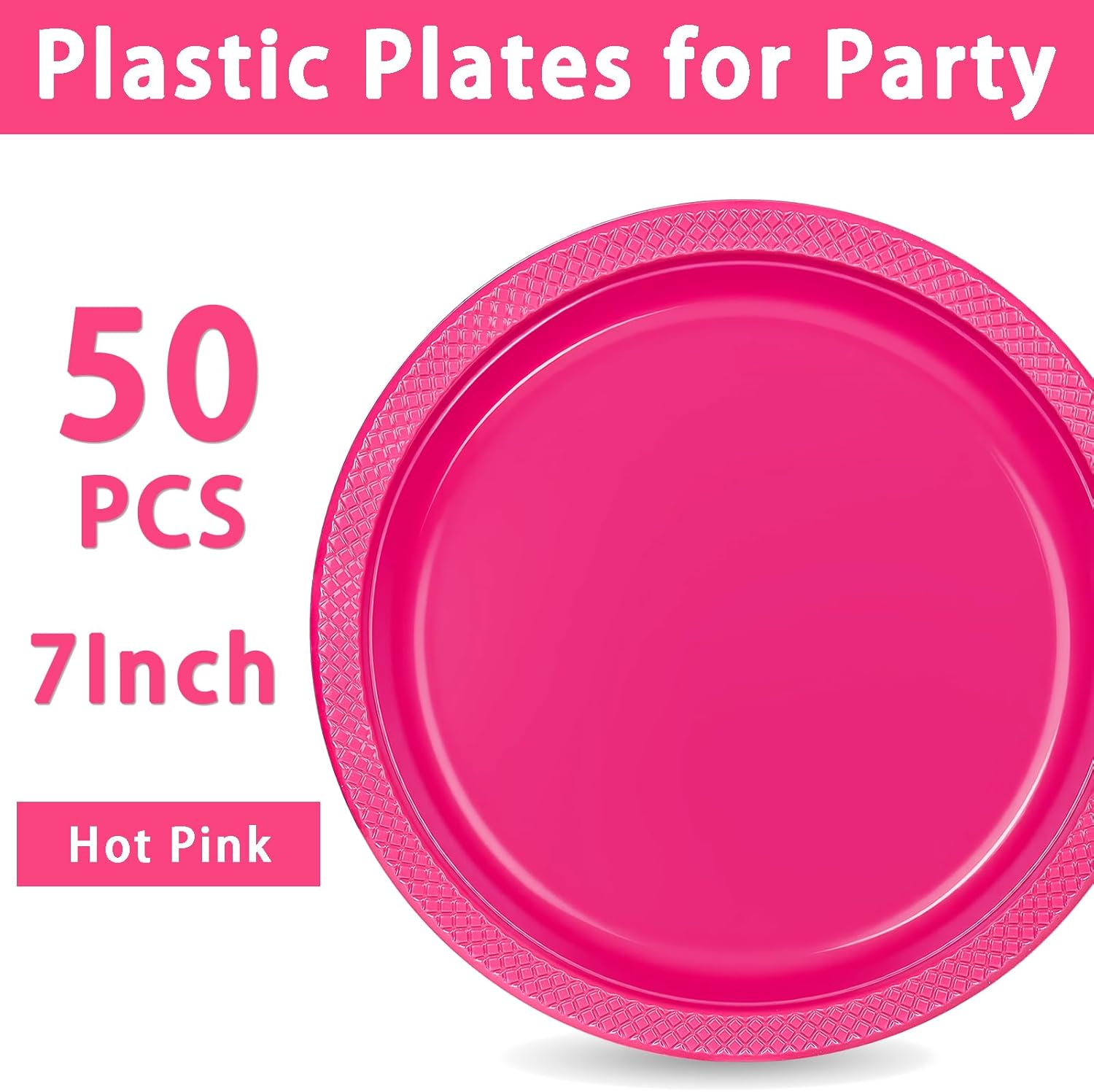 - 【Multi-Occasions Applicable】 Offering 7 inch plastic plates to meet different needs.Whether for parties, dining or daily use, these plastic plates are a necessity for a perfect dining experience. Simple and generous, elegant and vivid. These hot pink plastic plates disposable can match various festival themes and Daily activities, brighten up the dining table atmosphere and add a sense of sophistication to your table decorations.