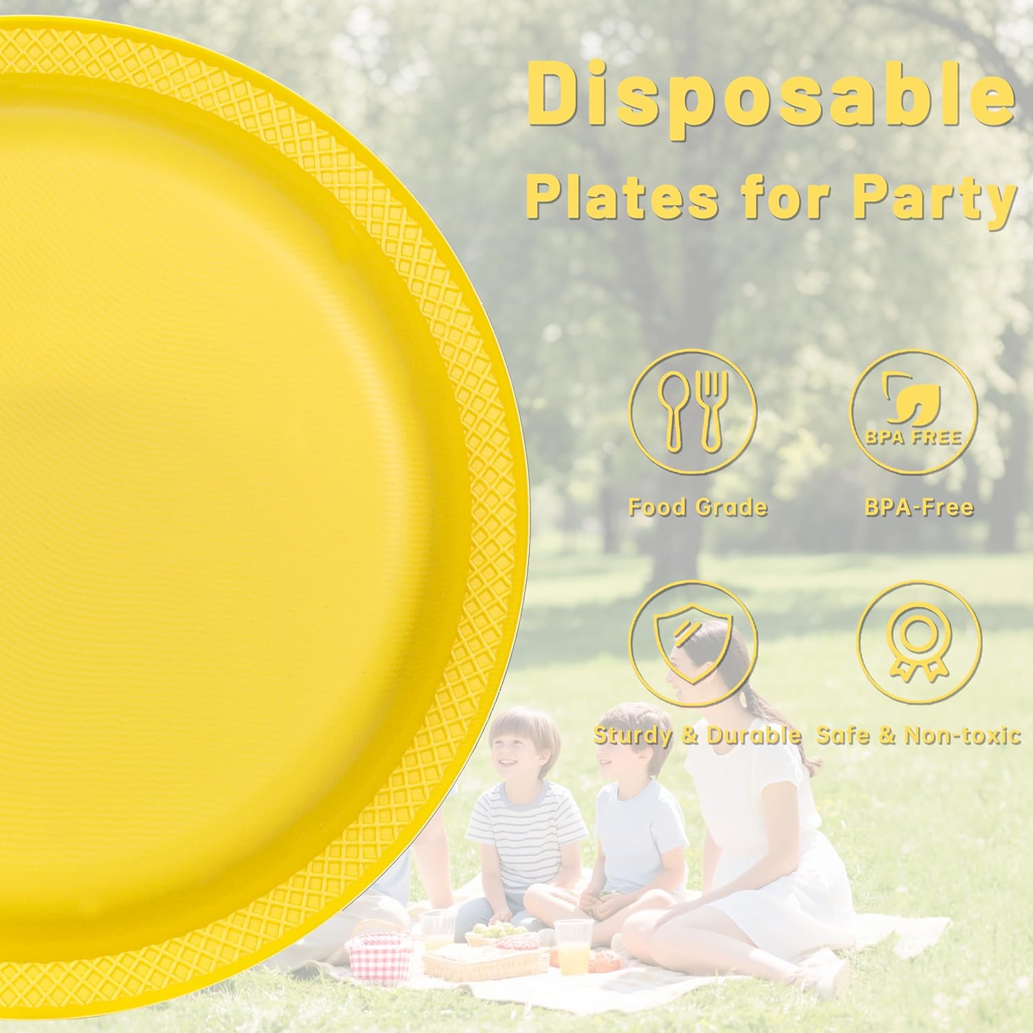- 【Multi-Occasions Applicable】 Offering 10 inch plastic plates to meet different needs.Whether for parties, dining or daily use, these plastic plates are a necessity for a perfect dining experience. Simple and generous, elegant and vivid. These yellow plastic plates disposable can match various festival themes and Daily activities, brighten up the dining table atmosphere and add a sense of sophistication to your table decorations.