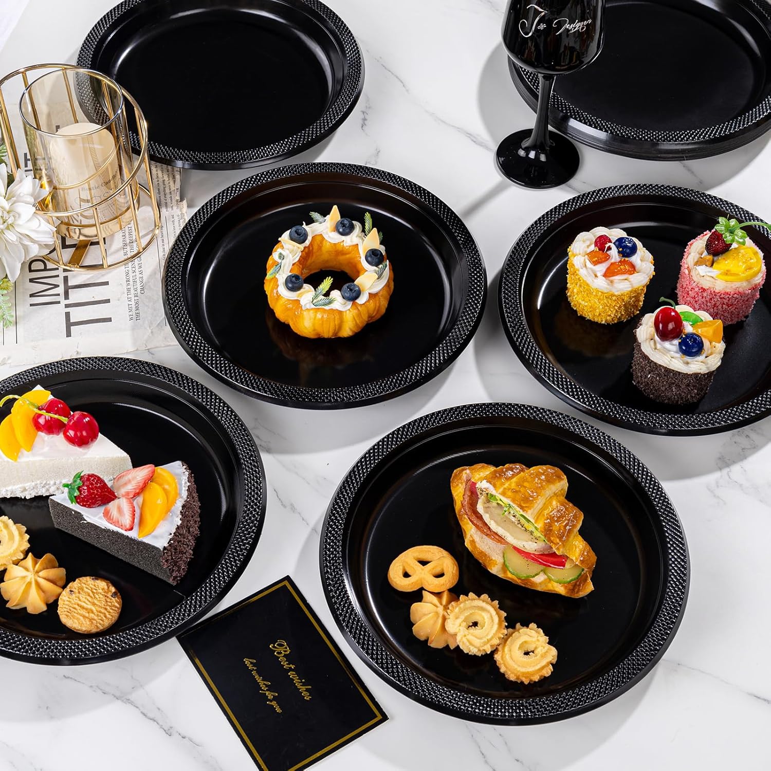 - 【Multi-Occasions Applicable】 Offering 10 inch plastic plates to meet different needs.Whether for parties, dining or daily use, these plastic plates are a necessity for a perfect dining experience. Simple and generous, elegant and vivid. These blcak plastic plates disposable can match various festival themes,Halloween and so on, brighten up the dining table atmosphere and add a sense of sophistication to your table decorations.