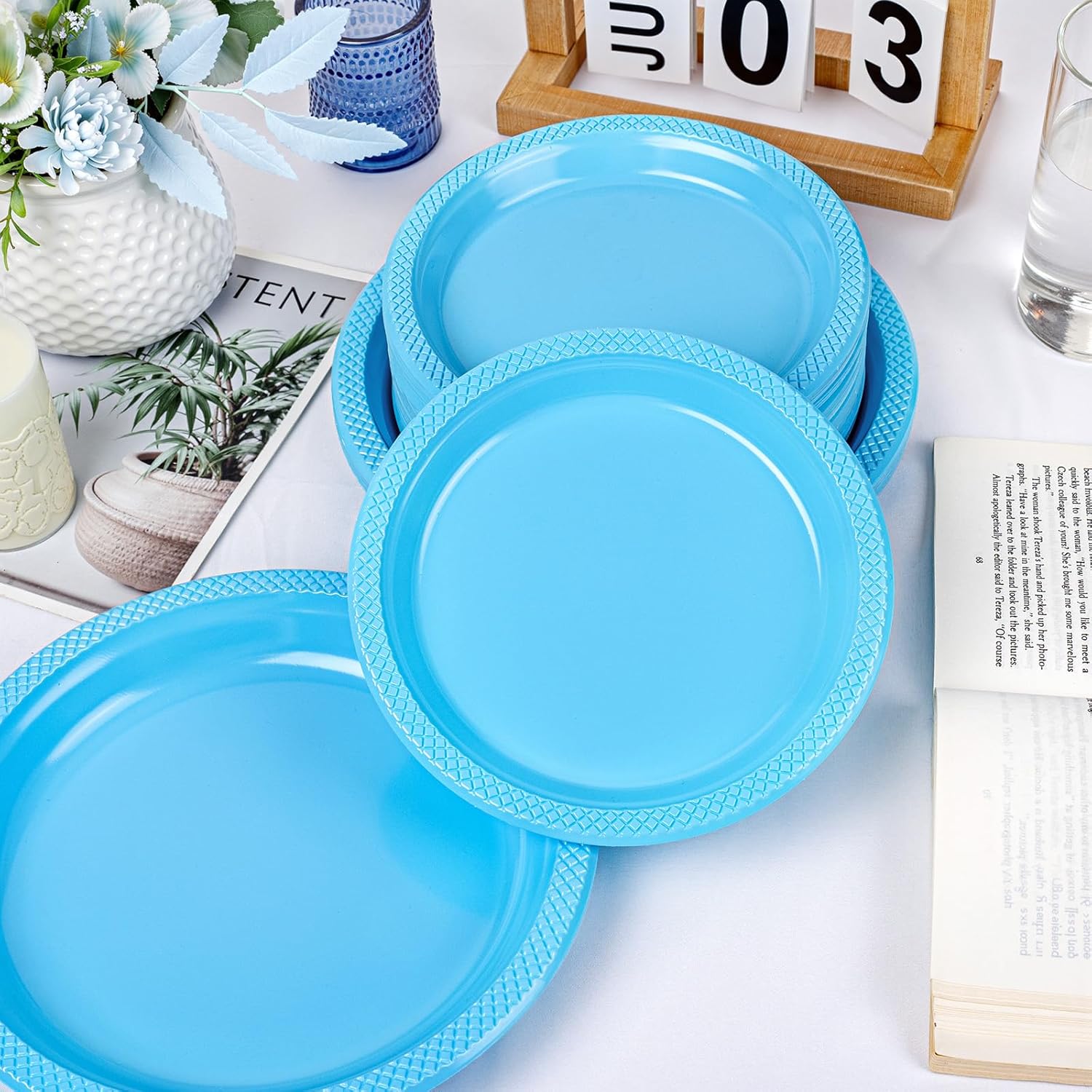 - 【Multi-Occasions Applicable】 Offering 9 inch plastic plates to meet different needs.Whether for parties, dining or daily use, these plastic plates are a necessity for a perfect dining experience. Simple and generous, elegant and vivid. These light blue plastic plates disposable can match various festival themes and Daily activities, brighten up the dining table atmosphere and add a sense of sophistication to your table decorations.