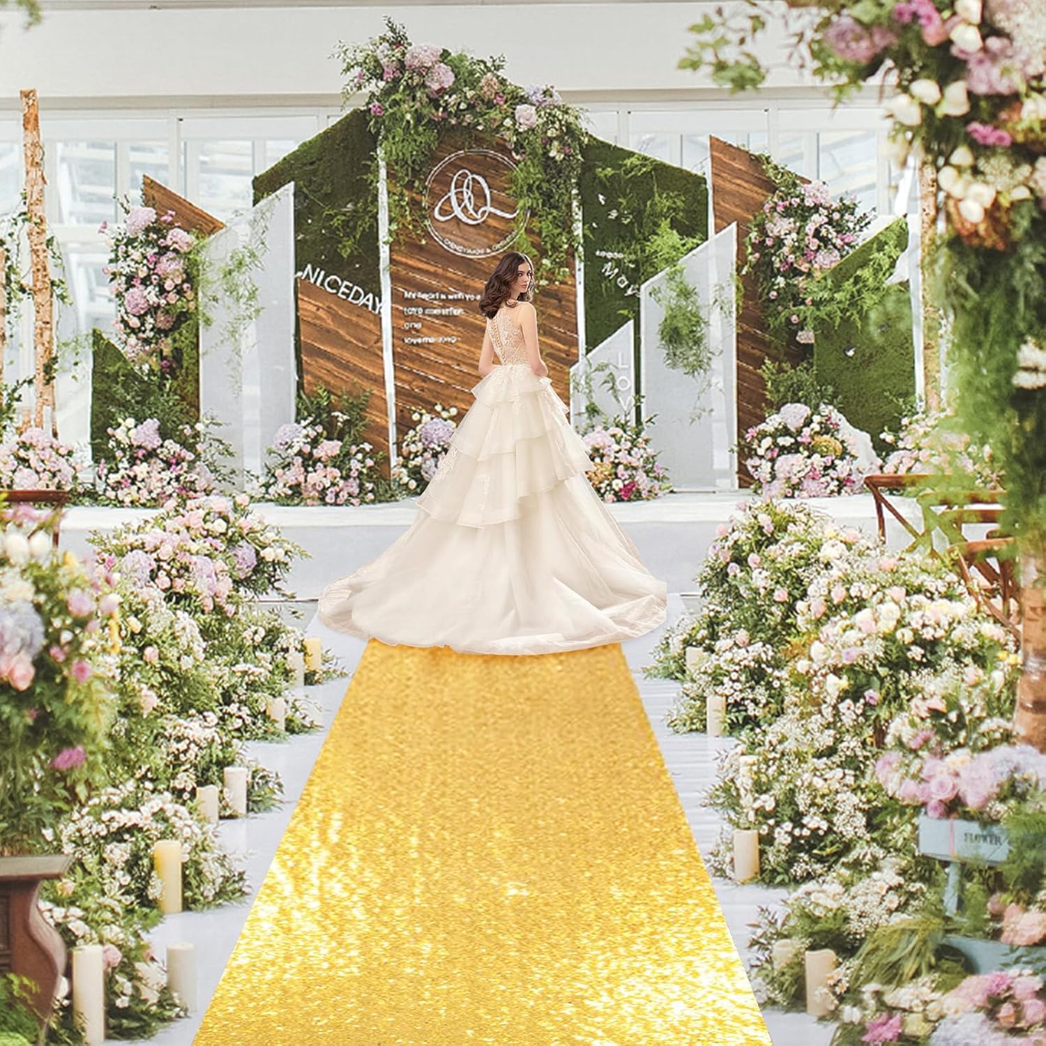 - ELEGANT DESIGN: The gold carpet runner shimmering sequins reflect light beautifully, adding a touch of sophistication and glamour to any indoor or outdoor event