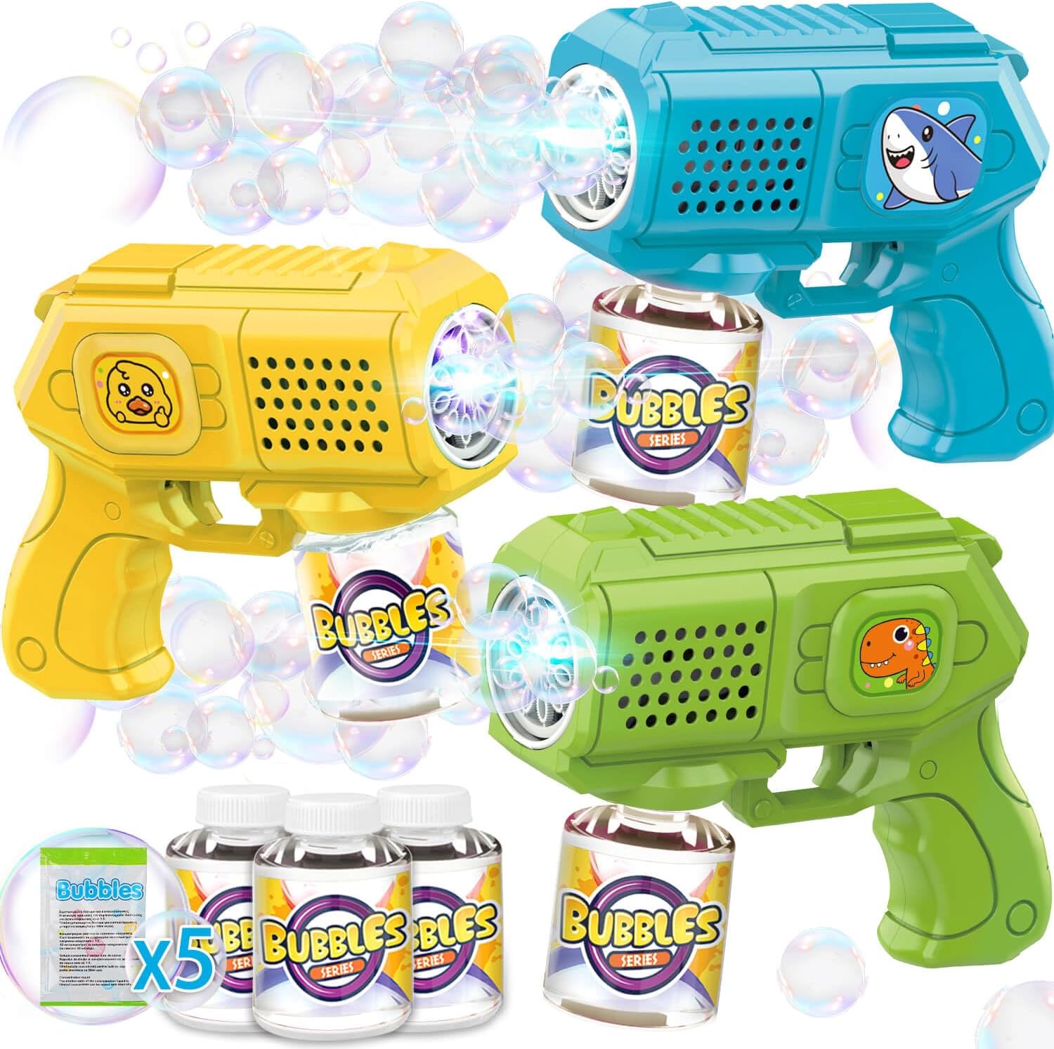 Bubble Guns with Bubble Solution- 3 Pack, Bubbles Gun, Blaster, Blower, Maker, Machine for Boys Girls, Birthday Gifts for Ages 3 4 5 6 7 8 Year Old Kid, Outdoor Toys for Toddlers, Party, Wedding