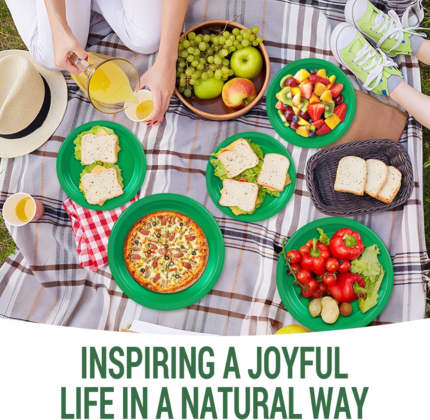 50 Green Plastic Plates For Party, Includes 25-9" & 25-7" Cake Dessert Plastic Dinner Plates Disposable For Party Supplies