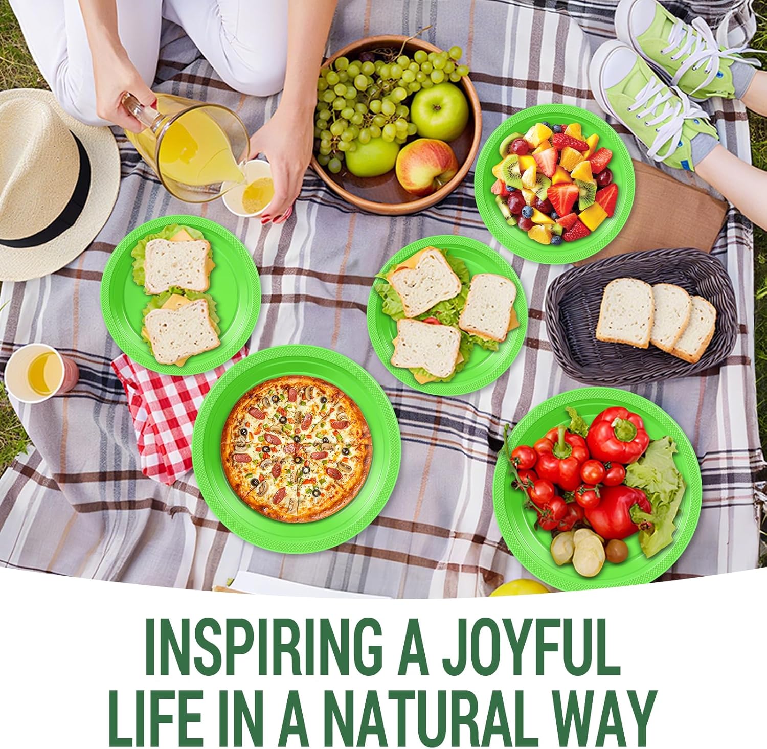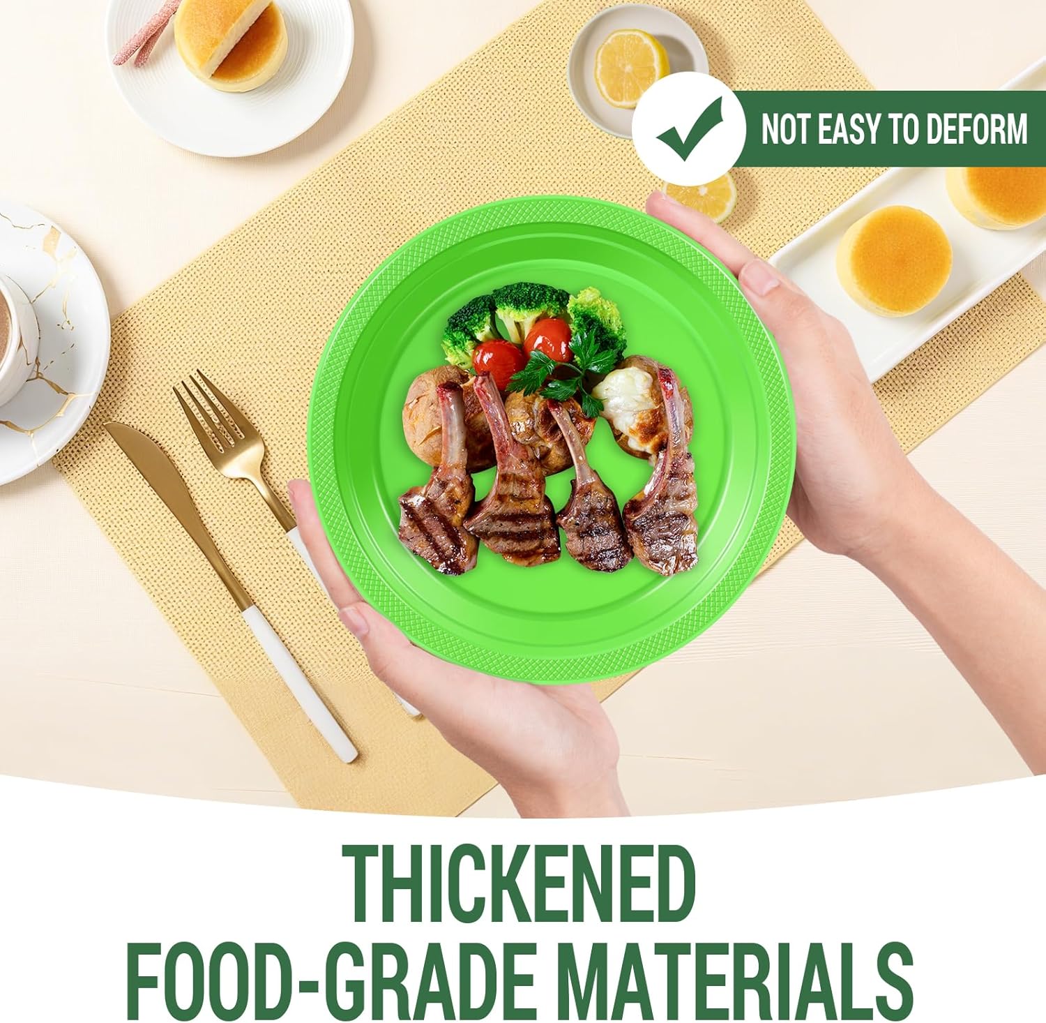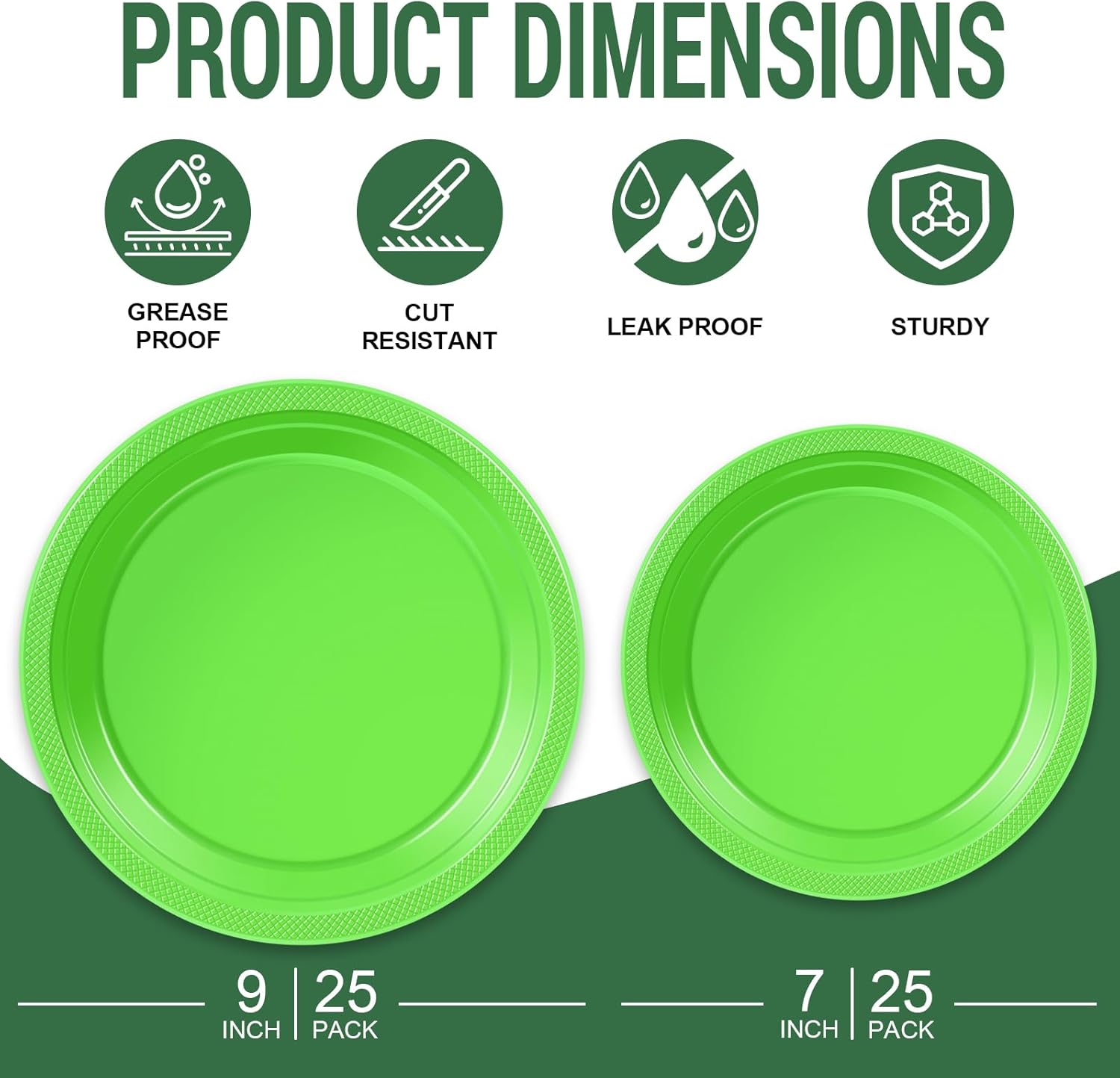 50 Lime Green Plastic Plates For Party, Includes 25-9" & 25-7" Cake Dessert Plastic Dinner Plates Disposable For Party Supplies