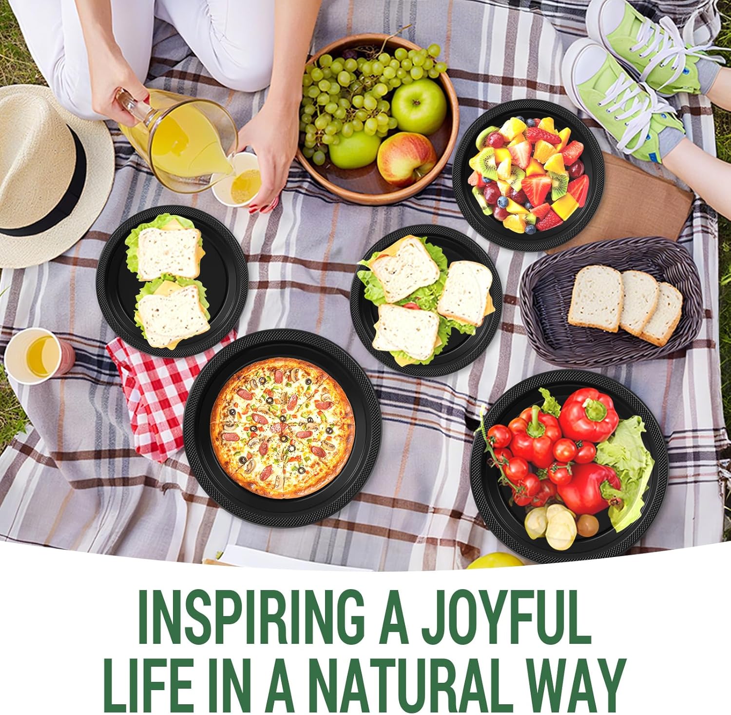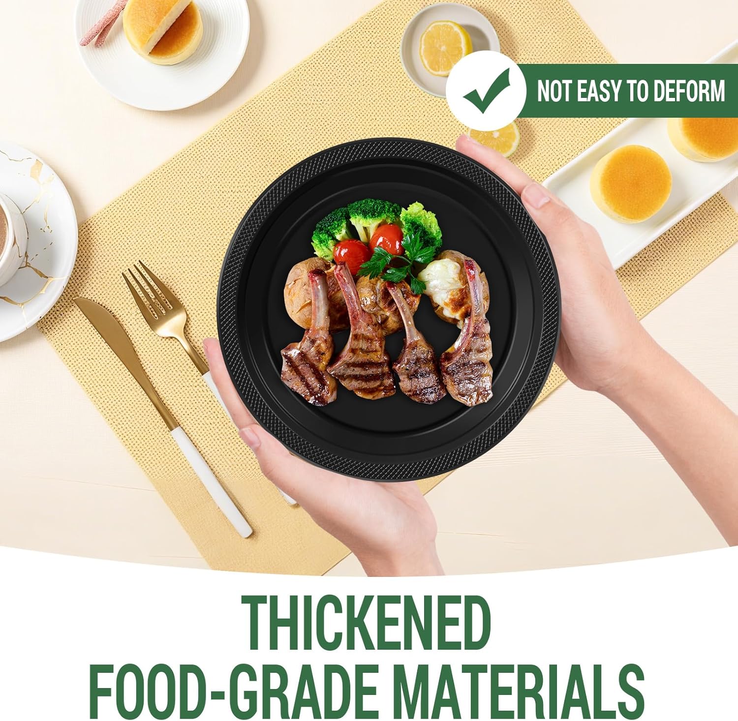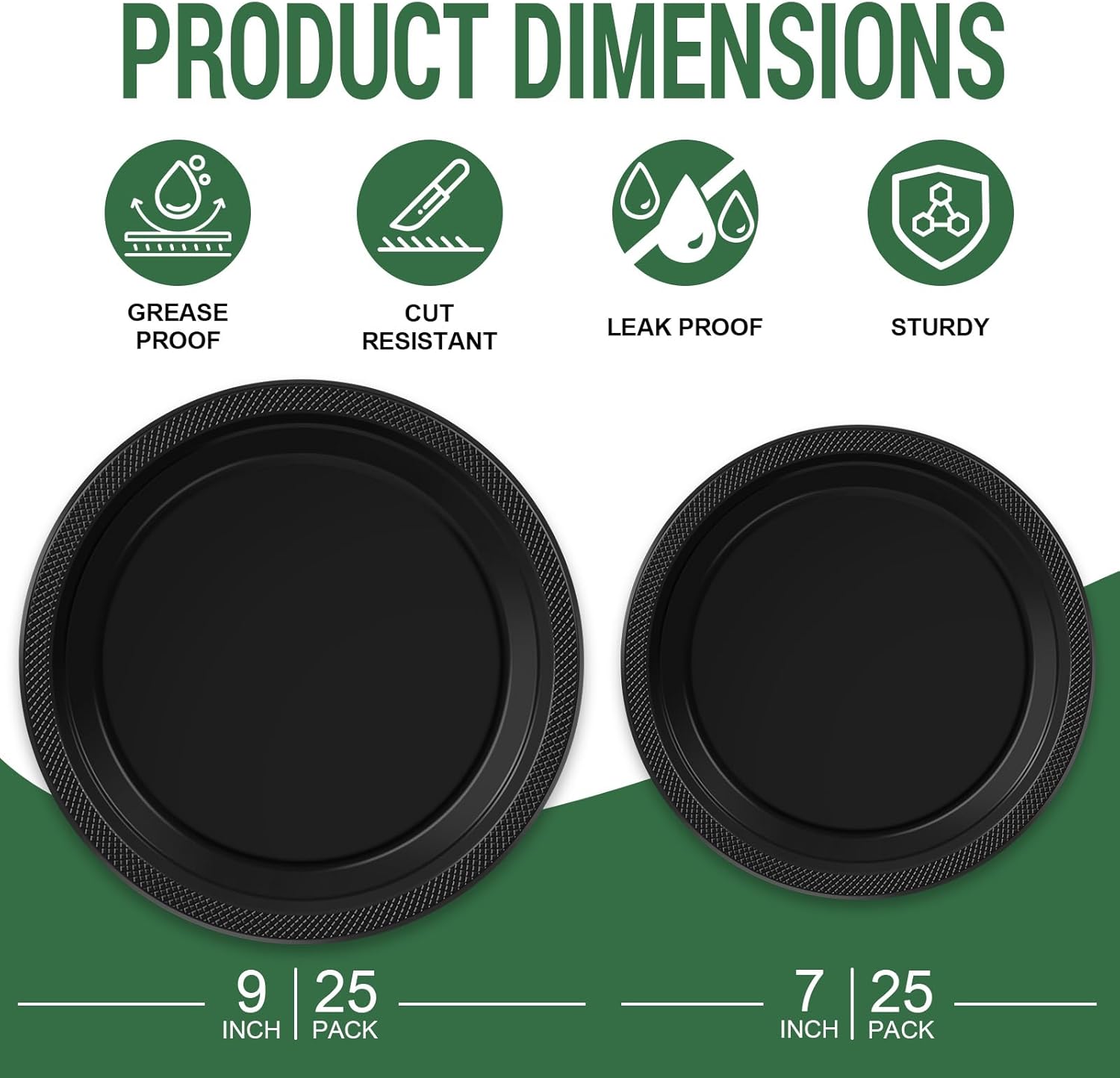 - What's Included: Disposable plastic plates set includes 25- 7" dessert plates and 25- 9" large dinner plates.